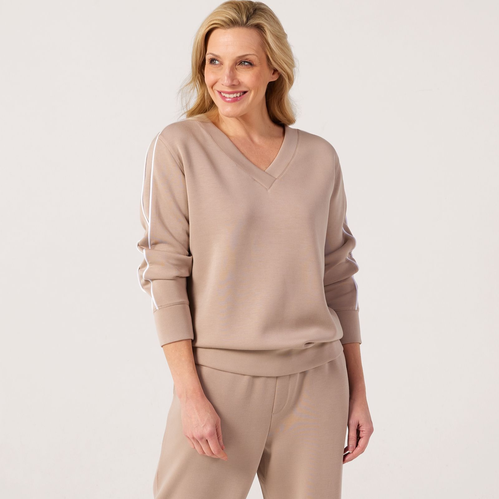 Bring effortless style to your everyday with this leisurewear jumper from Ruth Langsford, designed with striking side piping and a soft drop shoulder for a relaxed, contemporary feel. Perfect for everything from casual outings to cosy evenings at home, its chic details make it a versatile choice you'll reach for again and again. Try layering it with your favourite jeans and trainers for an easy weekend look.