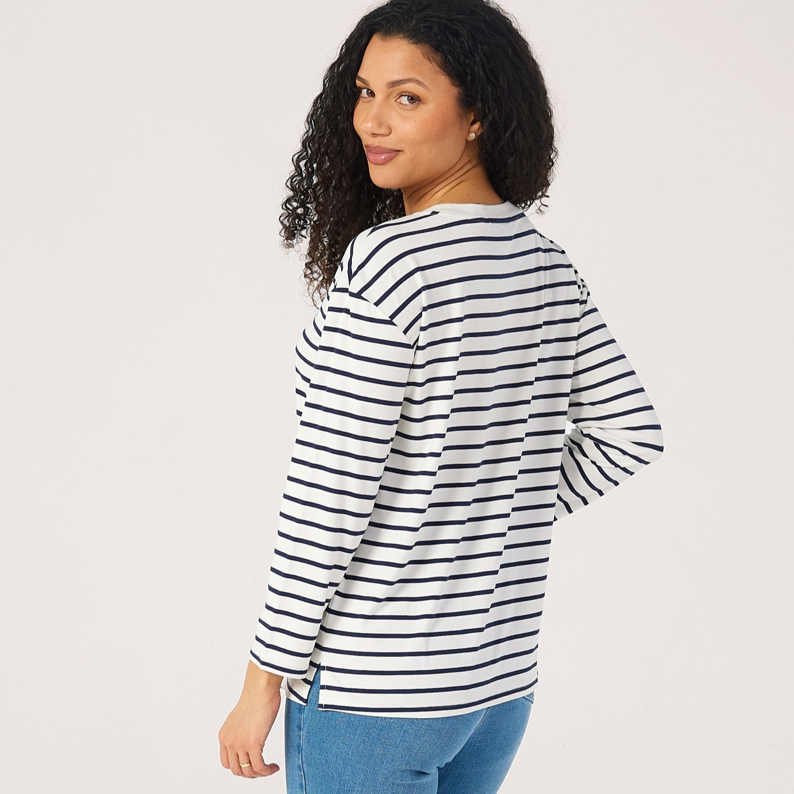 Step out like you're holidaying on a cruise ship in the long-sleeve stripe relaxed top from Ruth Langsford, a chic piece that channels effortless nautical charm. Its easy-going silhouette makes it perfect for casual brunches, sightseeing days or laid-back evenings with friends. Pair it with cropped trousers and loafers for a timeless look that works season after season.