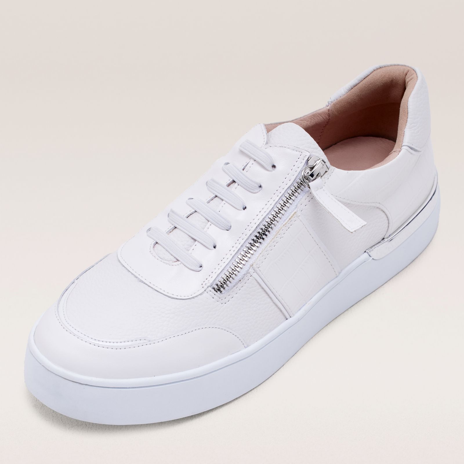 Step into effortless style and comfort with the Ruth Langsford Luxe Trainer. These lace and zip trainers are designed with a chic metal trim, combining fashion and functionality seamlessly. Whether you're heading to a casual brunch or running errands around town, these trainers ensure you do it in style. Pair them with your favourite jeans or a casual dress for a versatile look that transitions effortlessly from day to night.