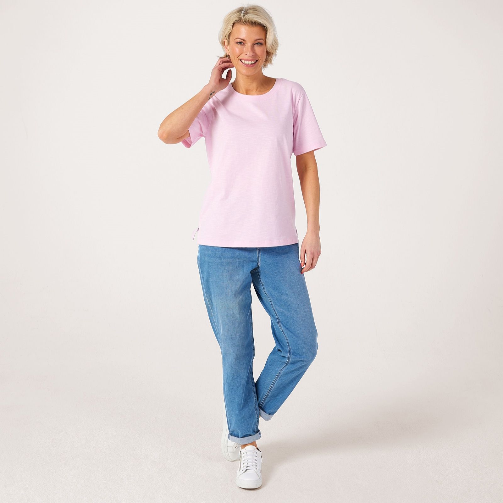 Make comfort key with the organic cotton crew neck T-shirt from Ruth Langsford. Crafted in a semi-relaxed fit, this everyday essential offers effortless style and breathable ease that feels soft against your skin. Perfect for layering under a blazer for polished days or pairing with jeans for relaxed weekends, it's a wardrobe staple you'll wear again and again.
