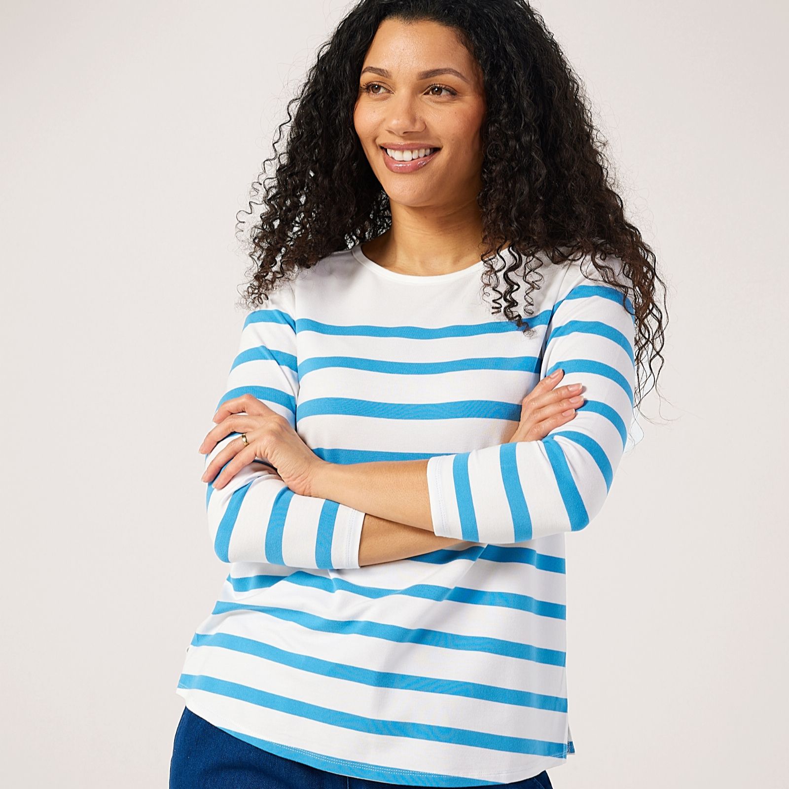 Exude timeless style with the Placement Stripe Top from Ruth Langsford. This chic top features a classic stripe design that adds a touch of sophistication to your everyday wardrobe. Perfect for casual outings or a relaxed weekend, it offers a comfortable fit and an endlessly versatile look that you can easily dress up or down. Pair it with your favourite jeans and flats for a laid-back yet polished ensemble.