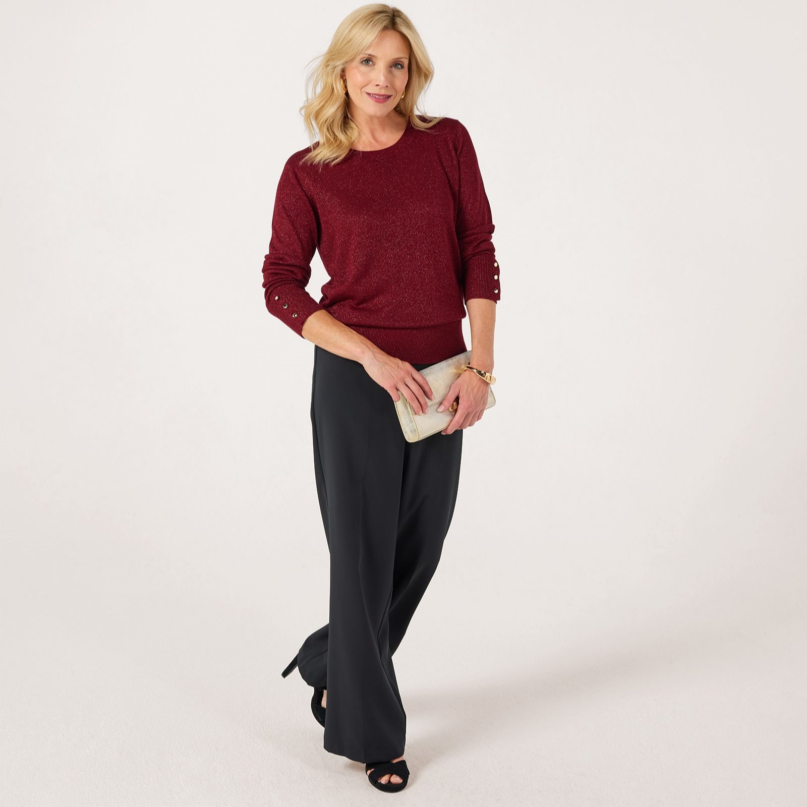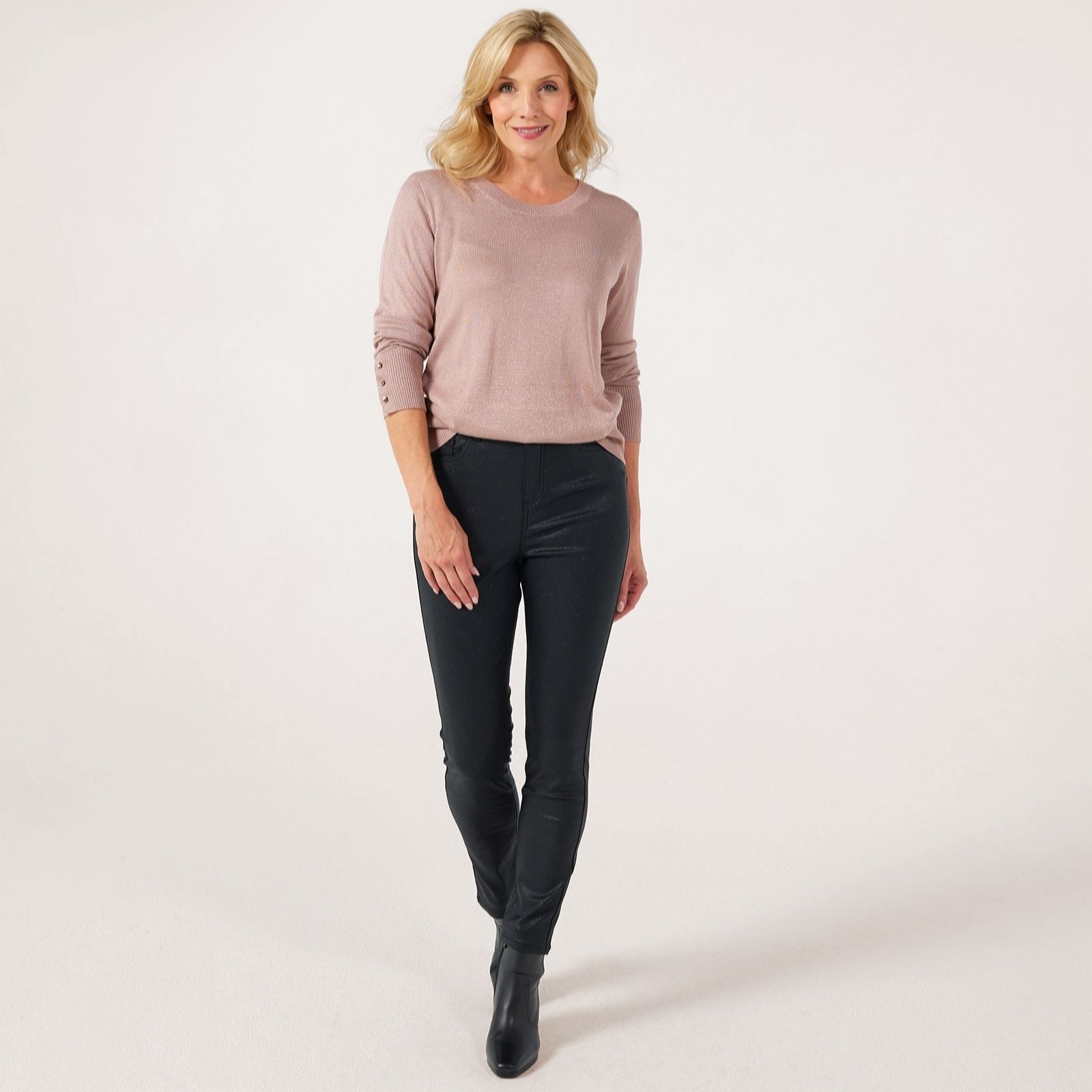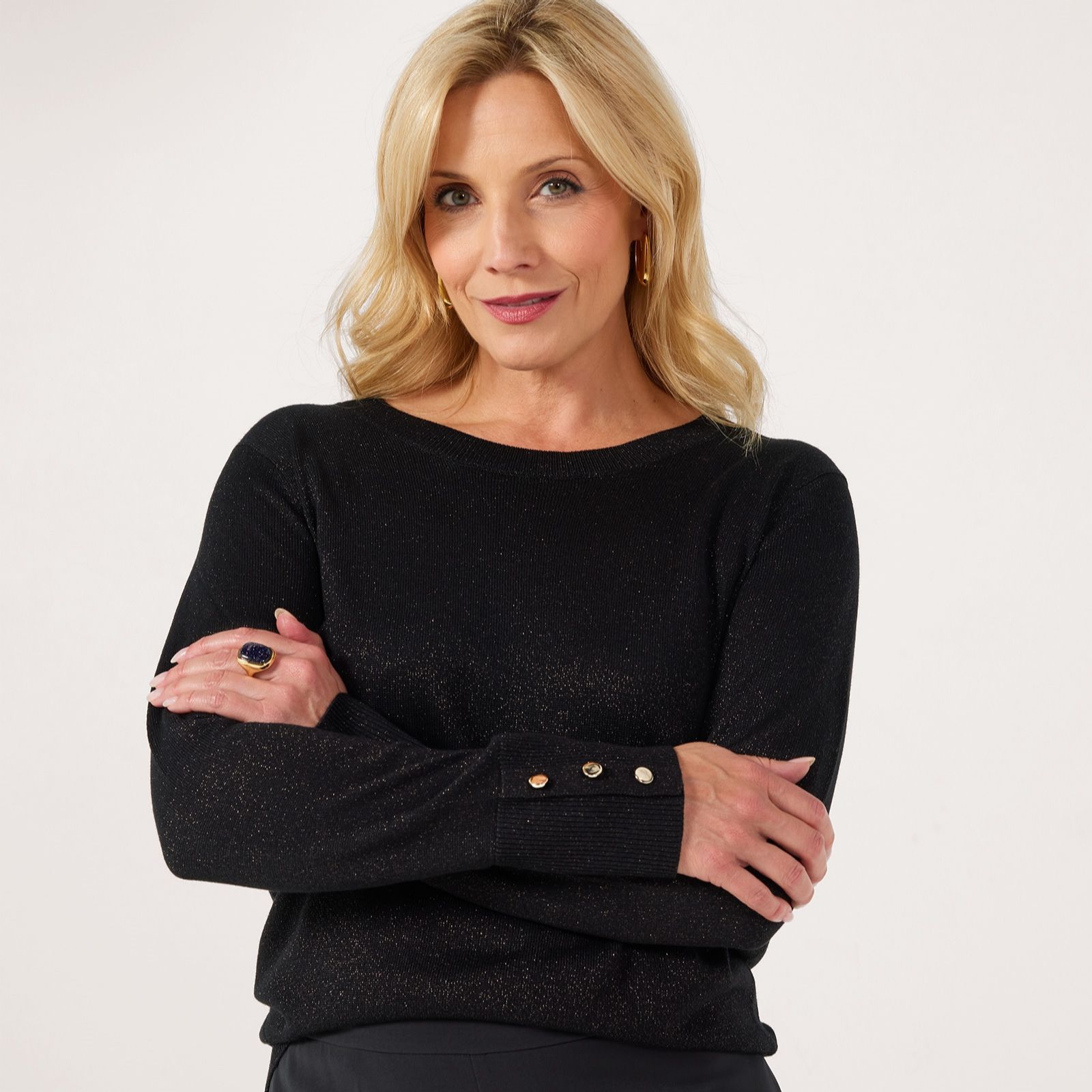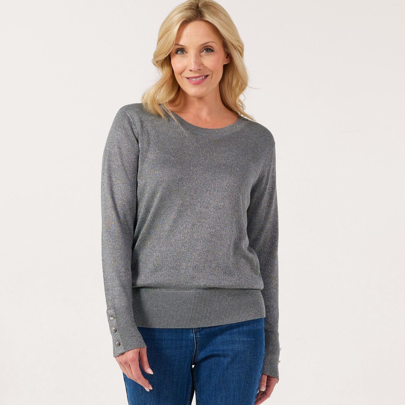 Party season is calling, and this sparkling jumper from Ruth Langsford will take you through festive gatherings and beyond! Made from a super-soft shimmering fabric, this versatile jumper will add a sophisticated, subtle sparkle to any of your ensembles, whether you're pairing it with a sleek maxi skirt for a party or with your favourite jeans for a fabulous daytime outfit. Give your look a little lift this season and let yourself shine!
