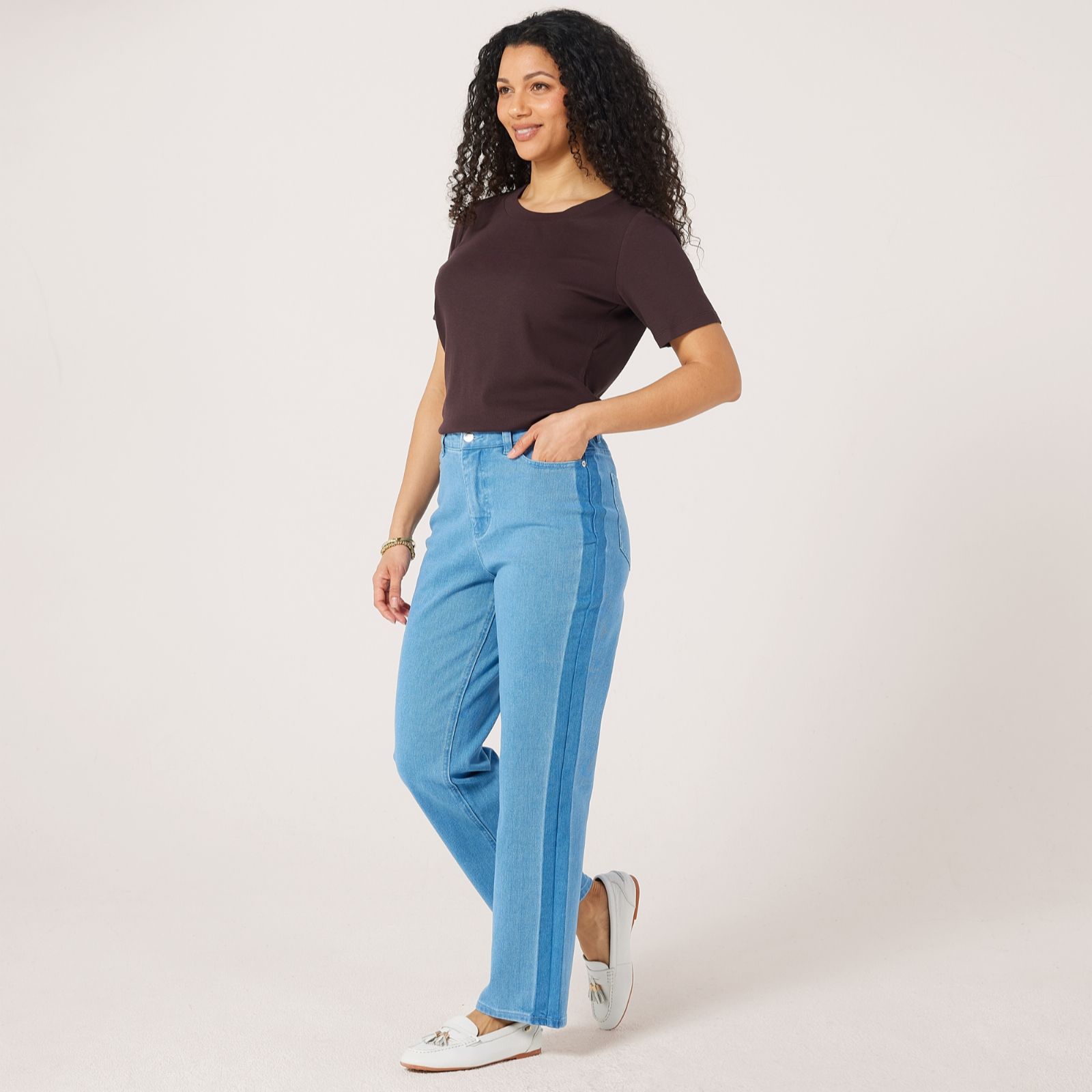 Add a touch of sporty sophistication to your everyday wardrobe with these side stripe straight leg jeans from Ruth Langsford. Designed in a petite fit, they offer a flattering silhouette that skims the leg while the contrast stripe detail adds a modern twist. Perfect for casual days or smart-casual outings, they pair beautifully with trainers and a crisp shirt for an effortlessly polished look.