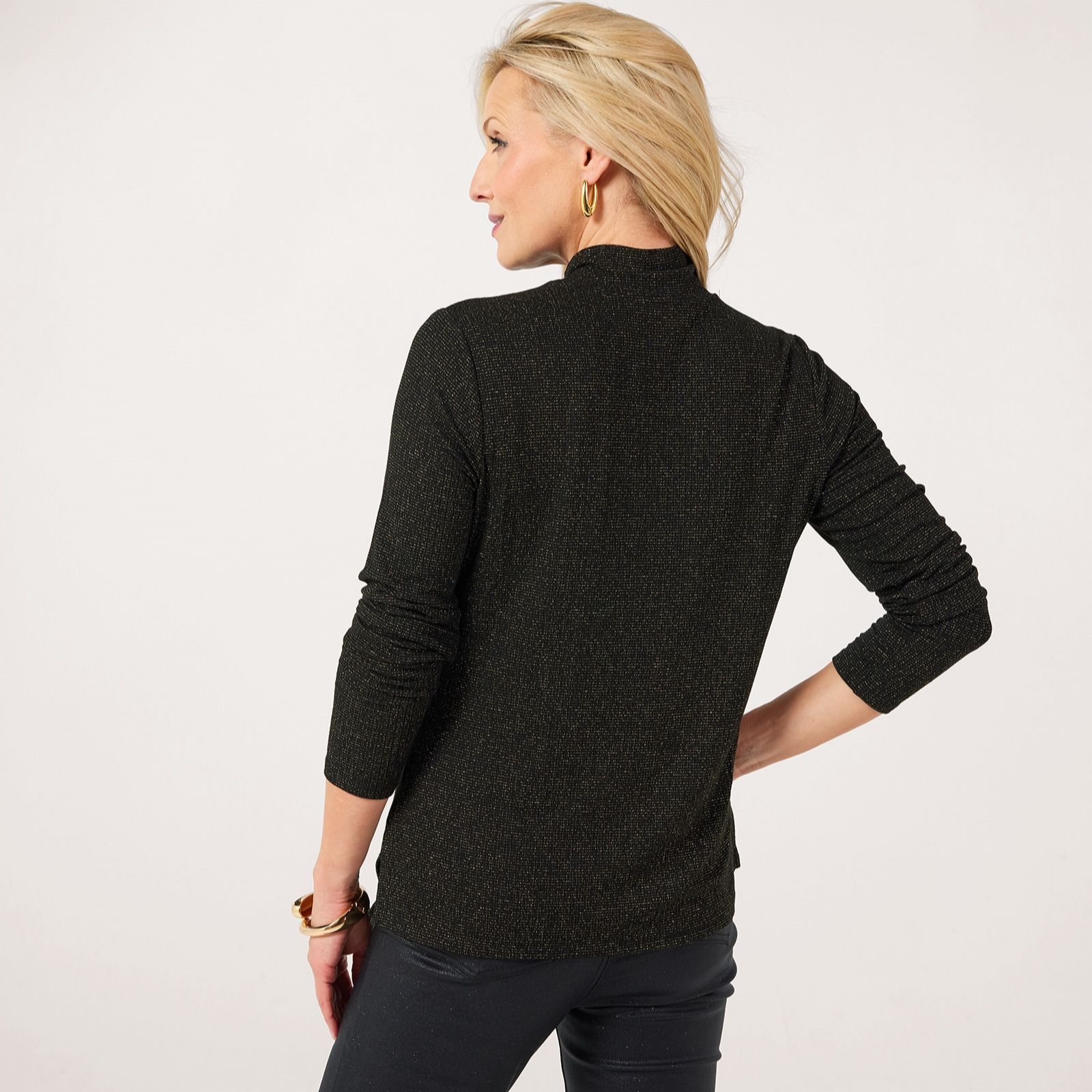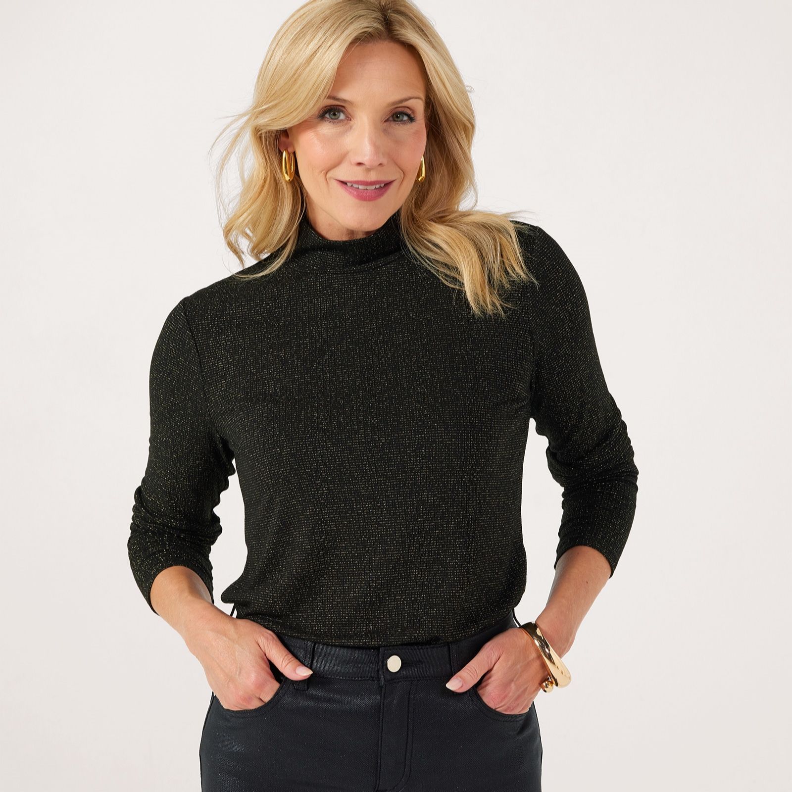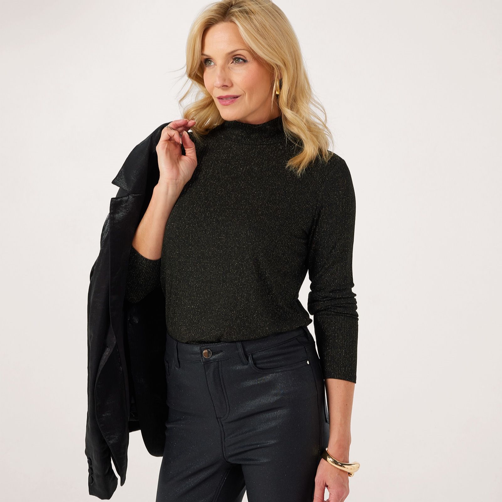 Look sleek and sophisticated in the sparkle roll-neck top from Ruth Langsford, where shimmering threads weave through a classic silhouette for a touch of subtle glamour. Ideal for adding a hint of sparkle to your day-to-evening wardrobe, this versatile piece transitions seamlessly from office meetings to dinner dates. Try styling it with tailored trousers and ankle boots for a polished, modern look.
