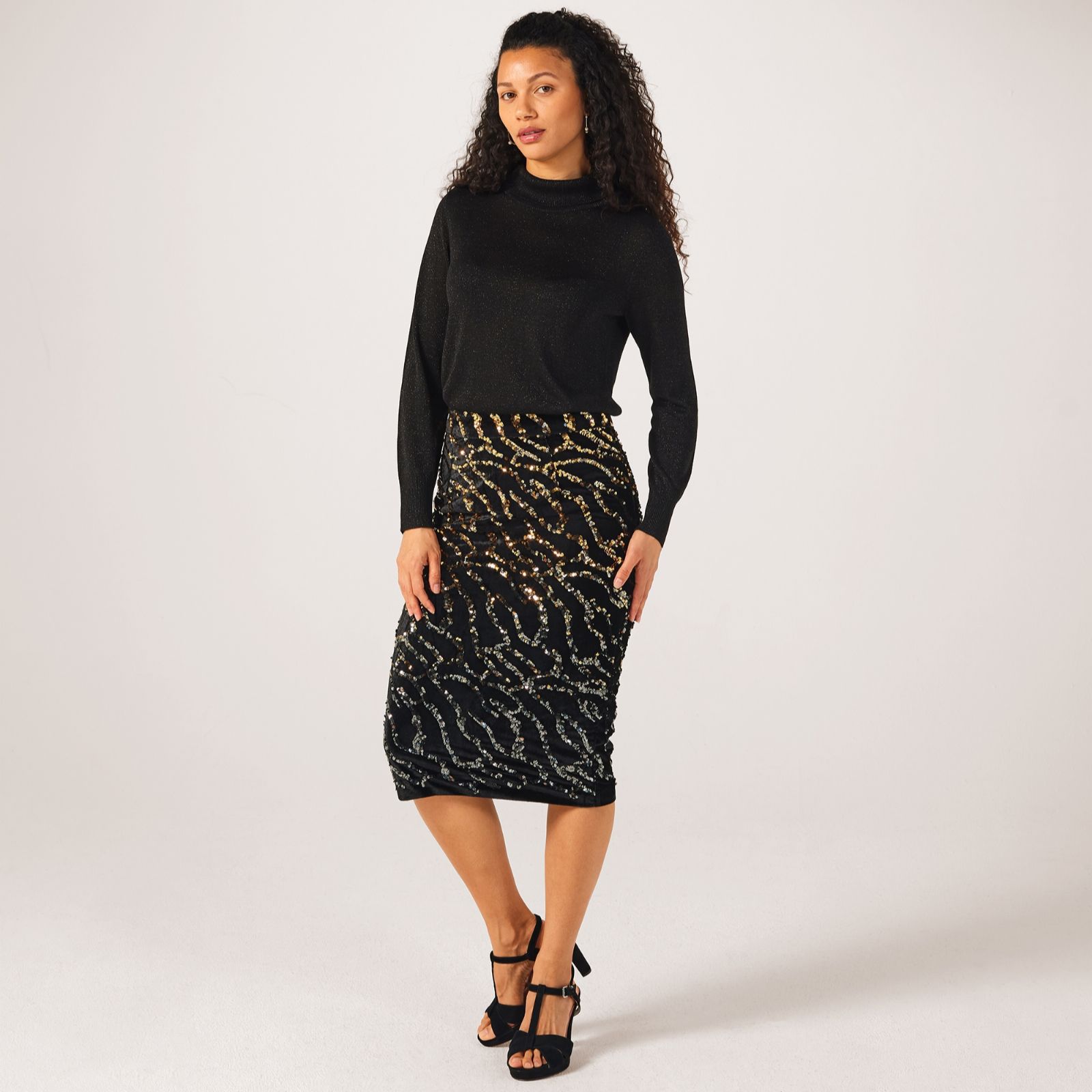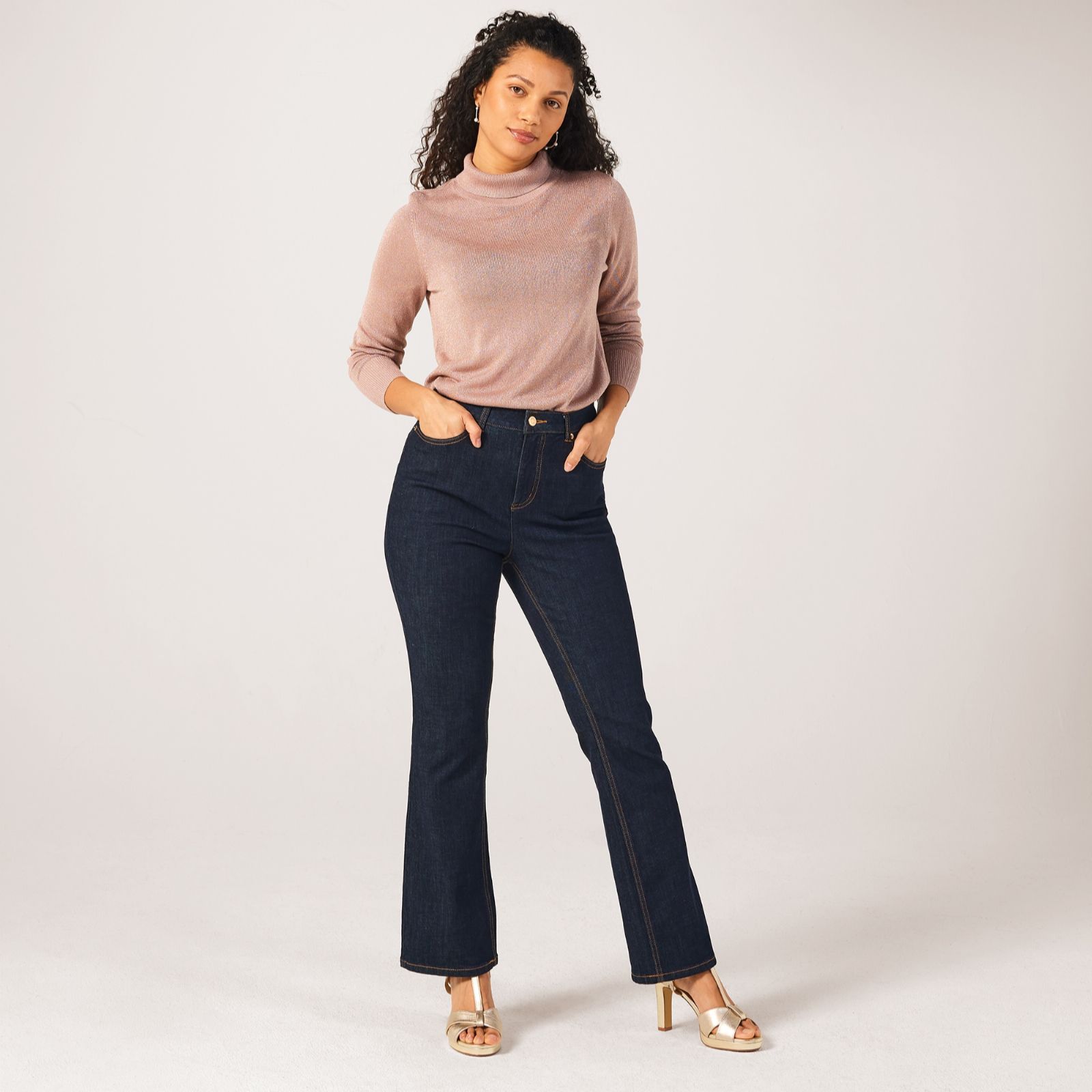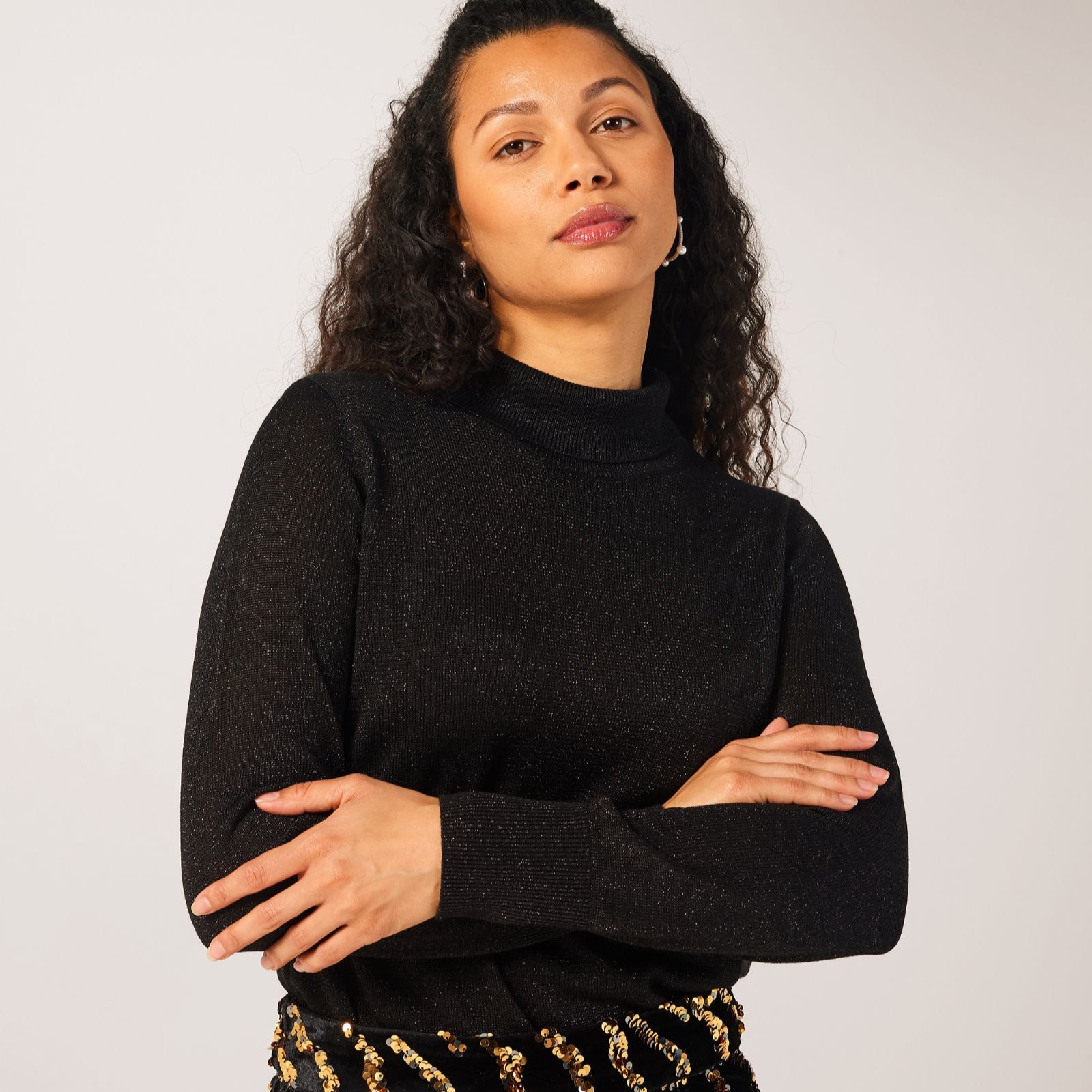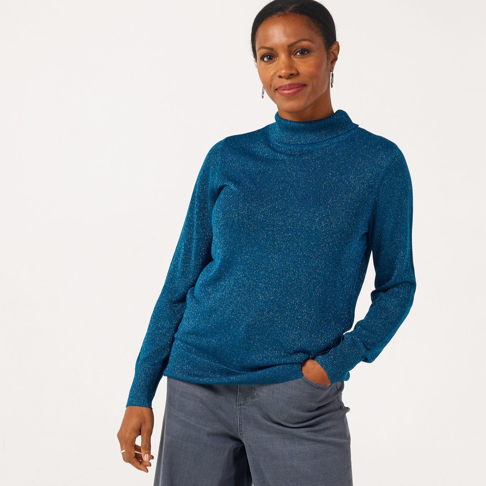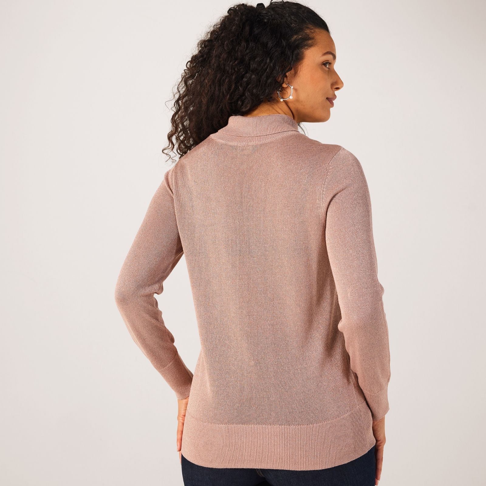 Indulge in the sophisticated shimmer of the Ruth Langsford Turtleneck Shimmer Jumper. This elegant jumper features a subtle shimmer effect that adds a touch of glamour to any outfit. With its turtleneck design and long sleeves, it's perfect for cooler days and evenings, providing both warmth and sleek style. Whether you're dressing up for a special occasion or adding a bit of sparkle to your everyday look, simply pair this jumper with tailored trousers for a polished look or with jeans for a more casual yet stylish ensemble.