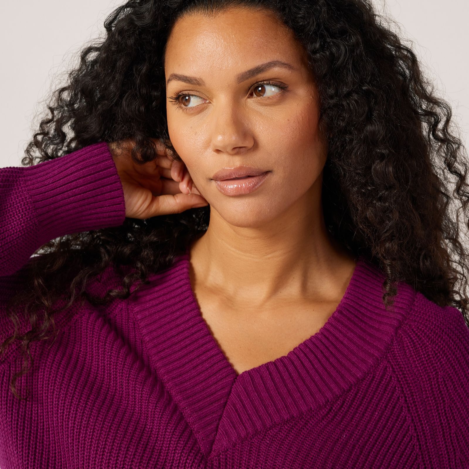 - the flattering V-neckline creates a relaxed silhouette that's perfect for layering on casual outings or dressing up for dinner with friends. Try pairing it with your favourite jeans or a tailored skirt to create a look that's both comfortable and chic.