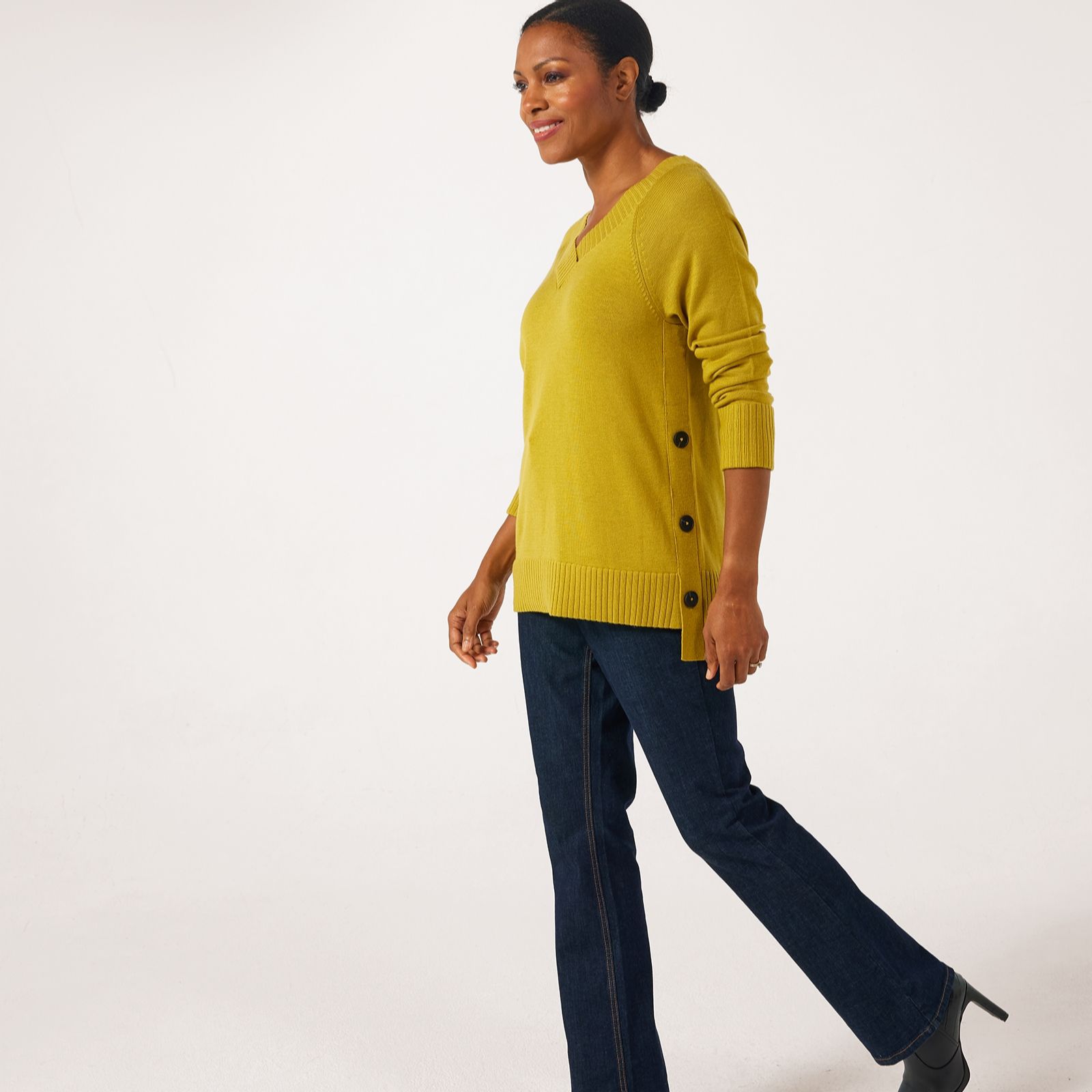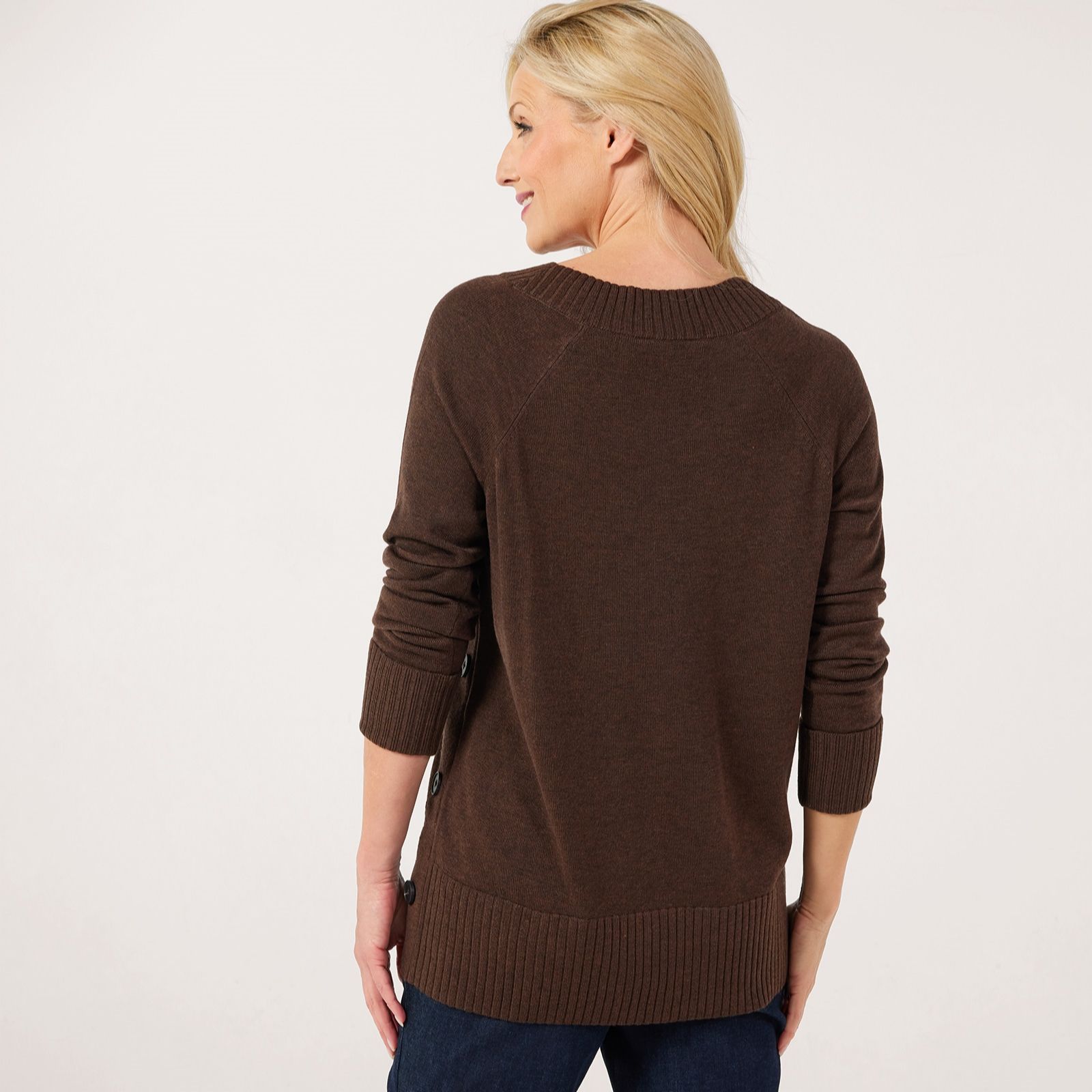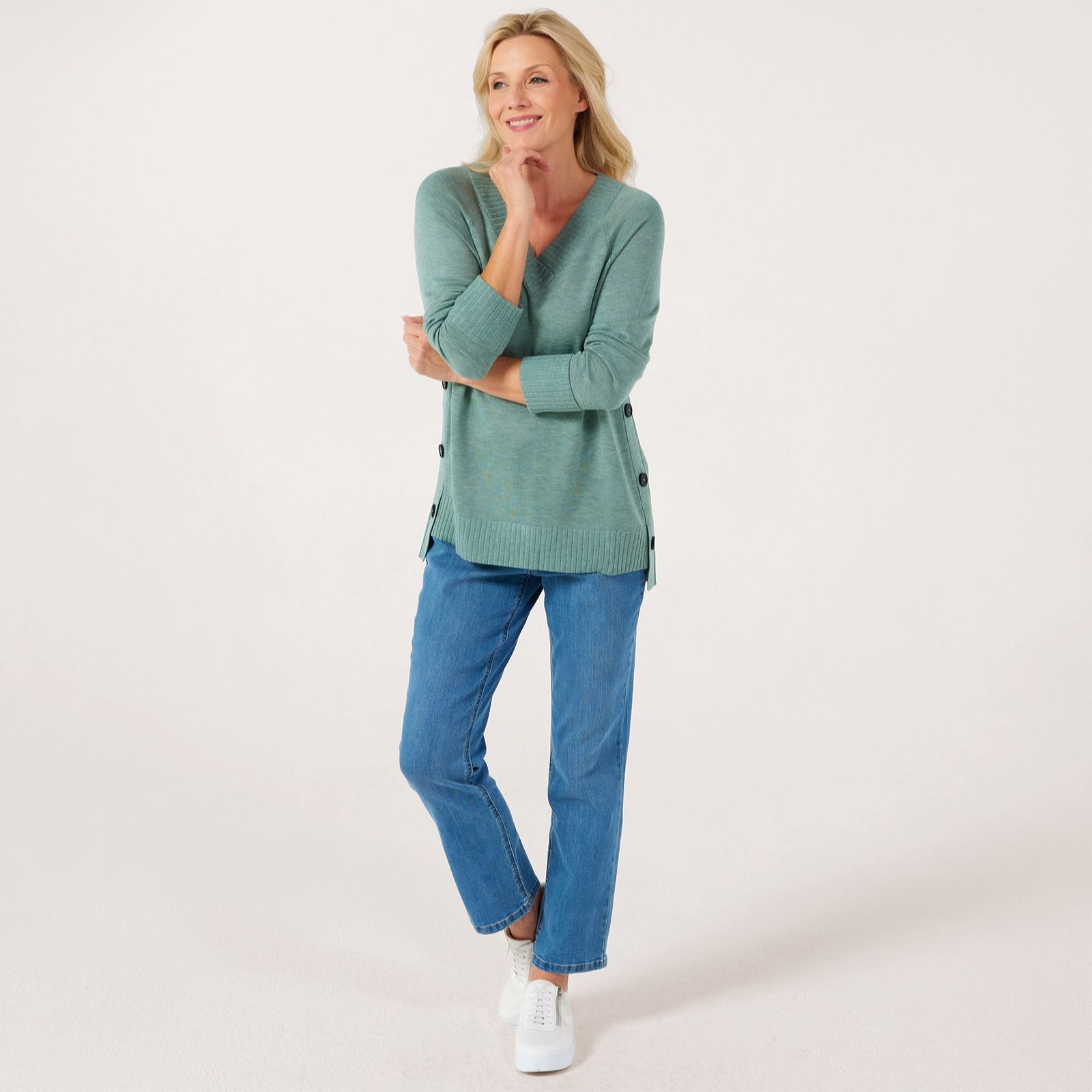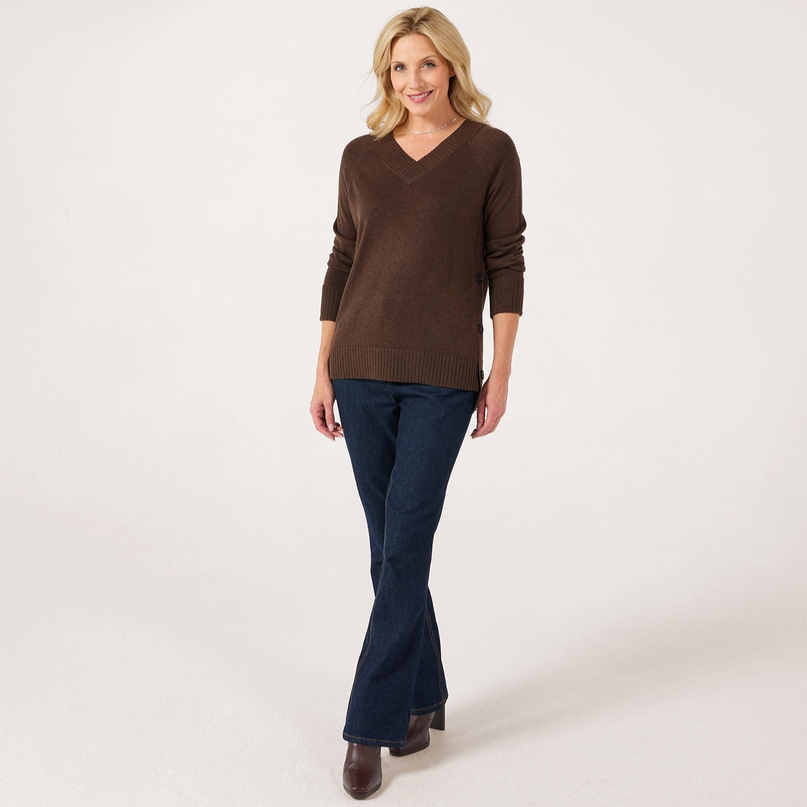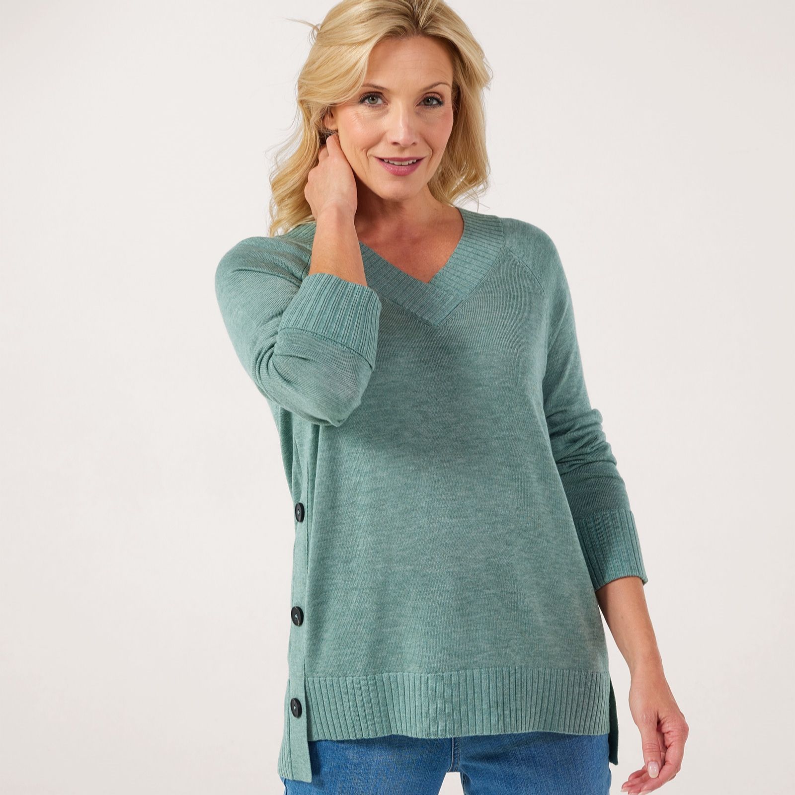 Refresh your knitwear collection with the Ruth Langsford V-neck side detail jumper, designed to bring effortless elegance and subtle flair to your everyday style. The classic V-neck and chic side detailing make it perfect for workdays, weekend brunch or layering on crisp evenings. Pair it with tailored trousers or your favourite jeans for a polished look that transitions seamlessly from day to night.