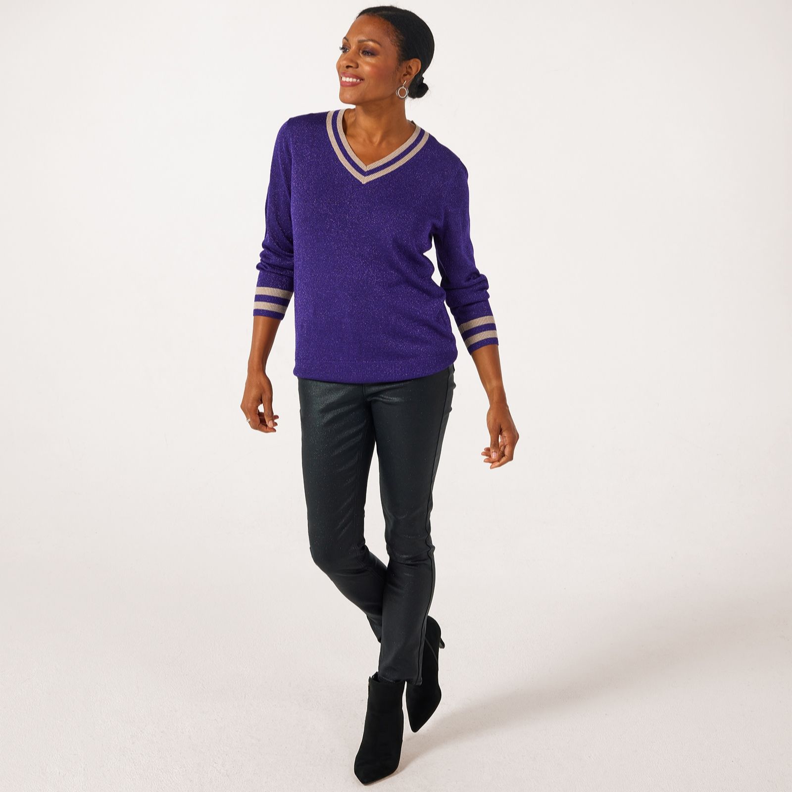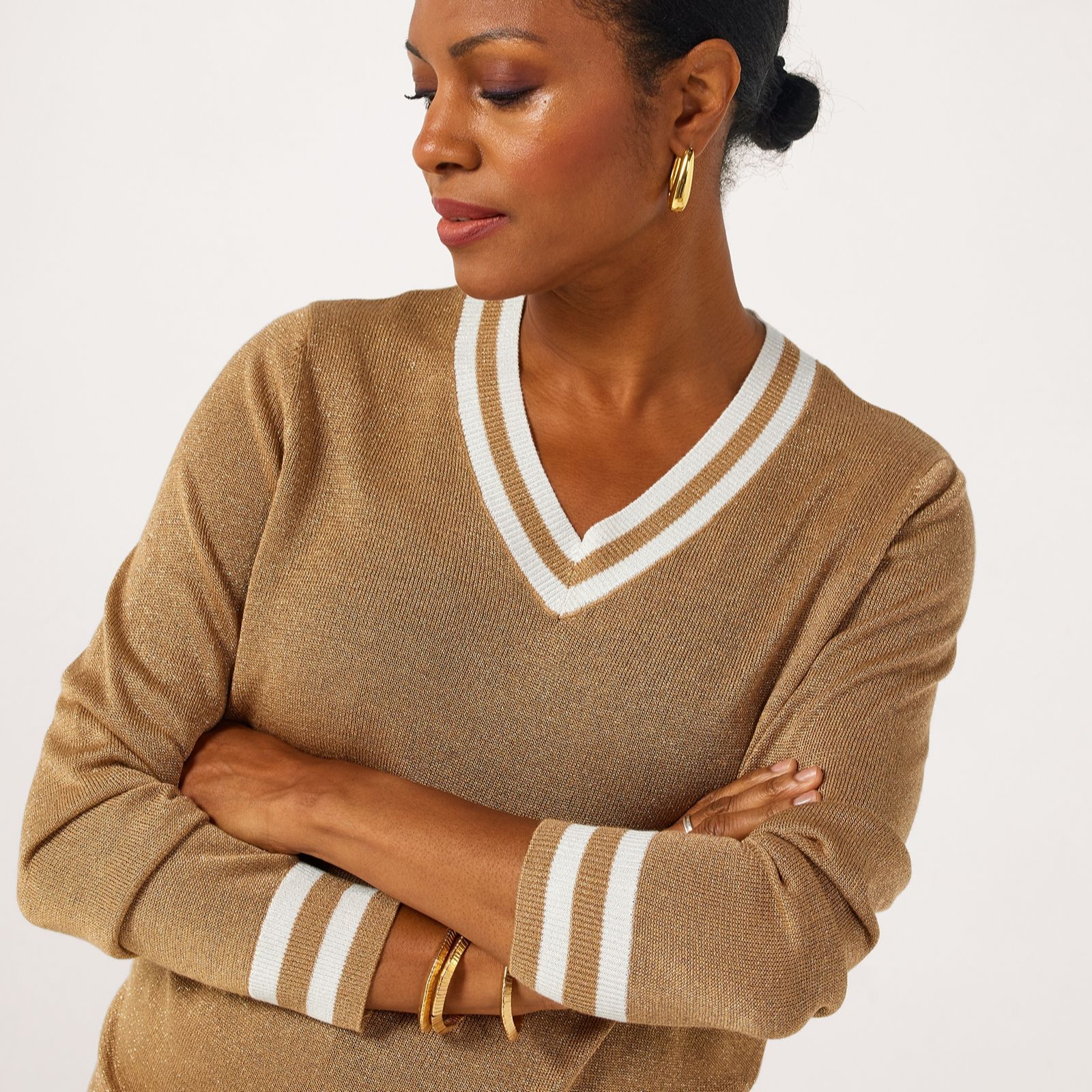Ruth Langsford V neck sparkle trim cricket jumper