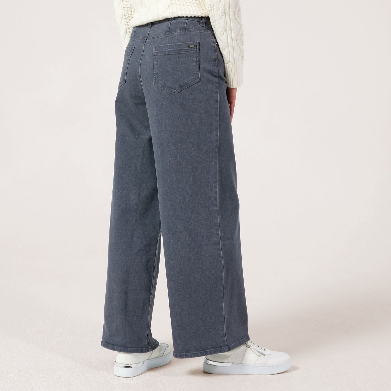 Step into effortless style with these wide leg jeans from Ruth Langsford, designed in a chic grey hue thats perfect for any season. Their relaxed silhouette offers a flattering drape, making them ideal for everything from casual brunches to smart-casual evenings. Pair them with a crisp white shirt and trainers for a laid-back look, or elevate with heels and a tailored blazer for a touch of sophistication.