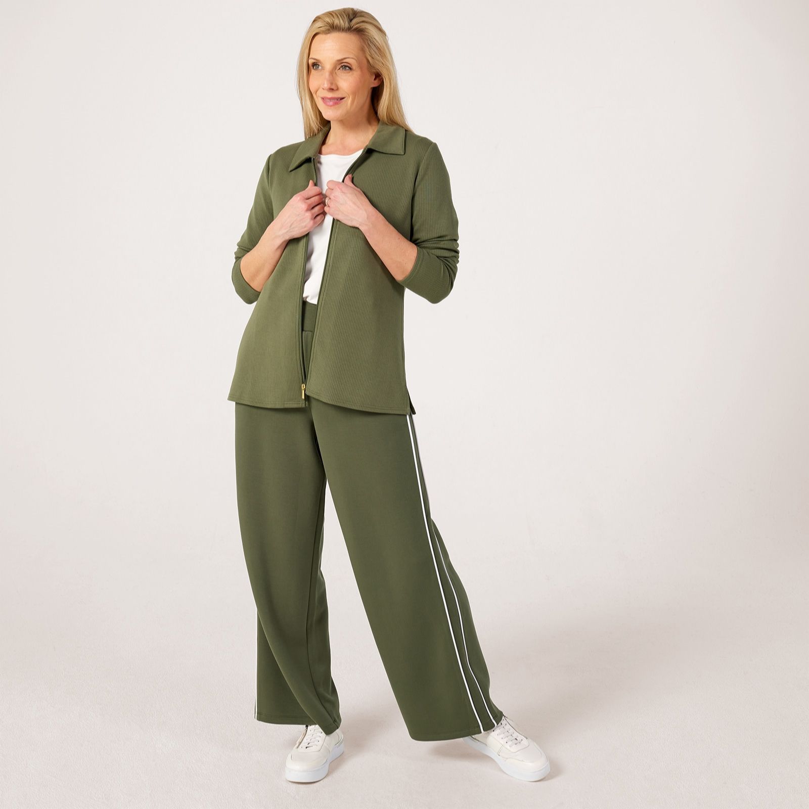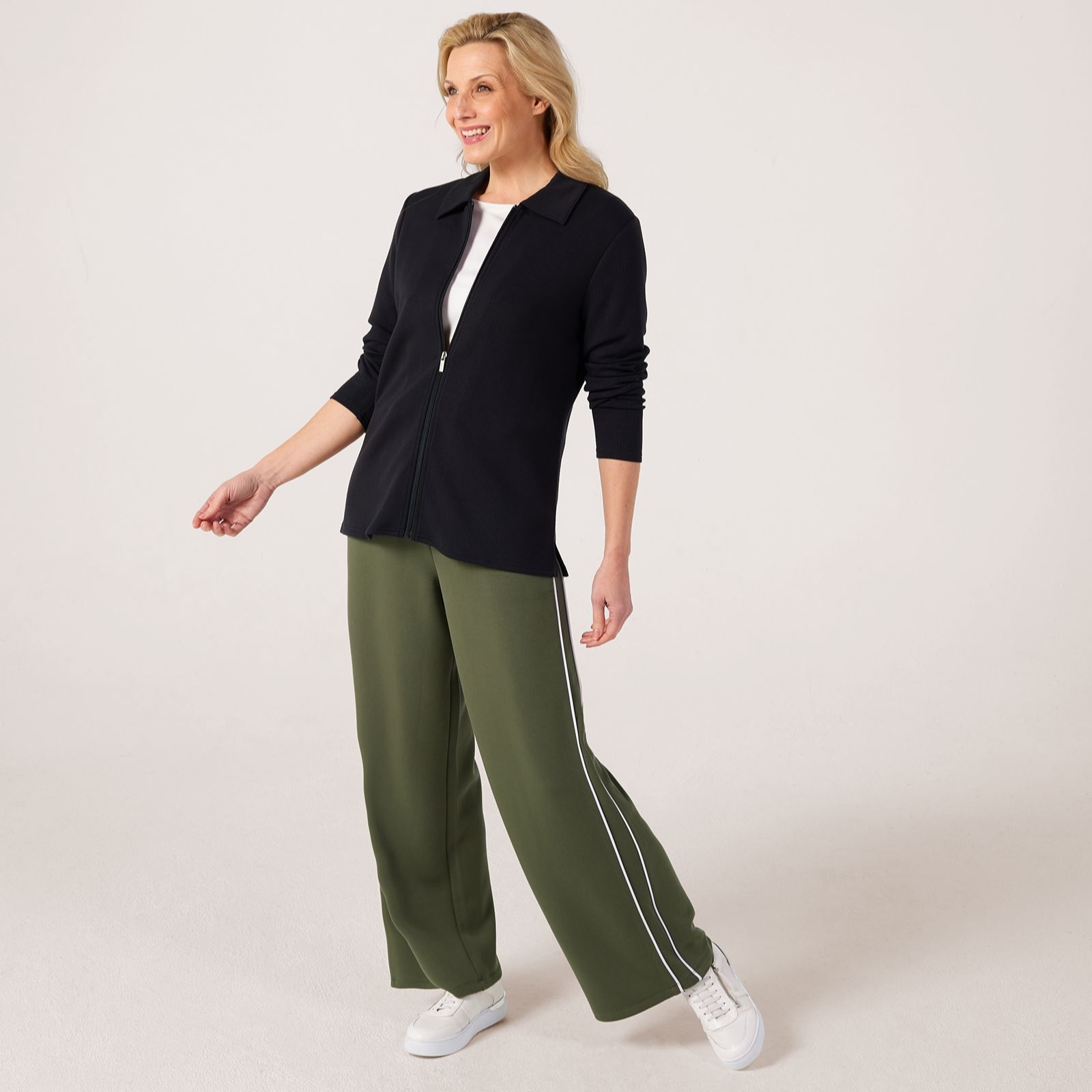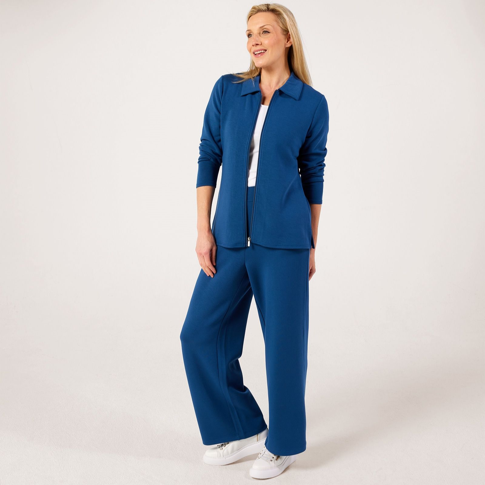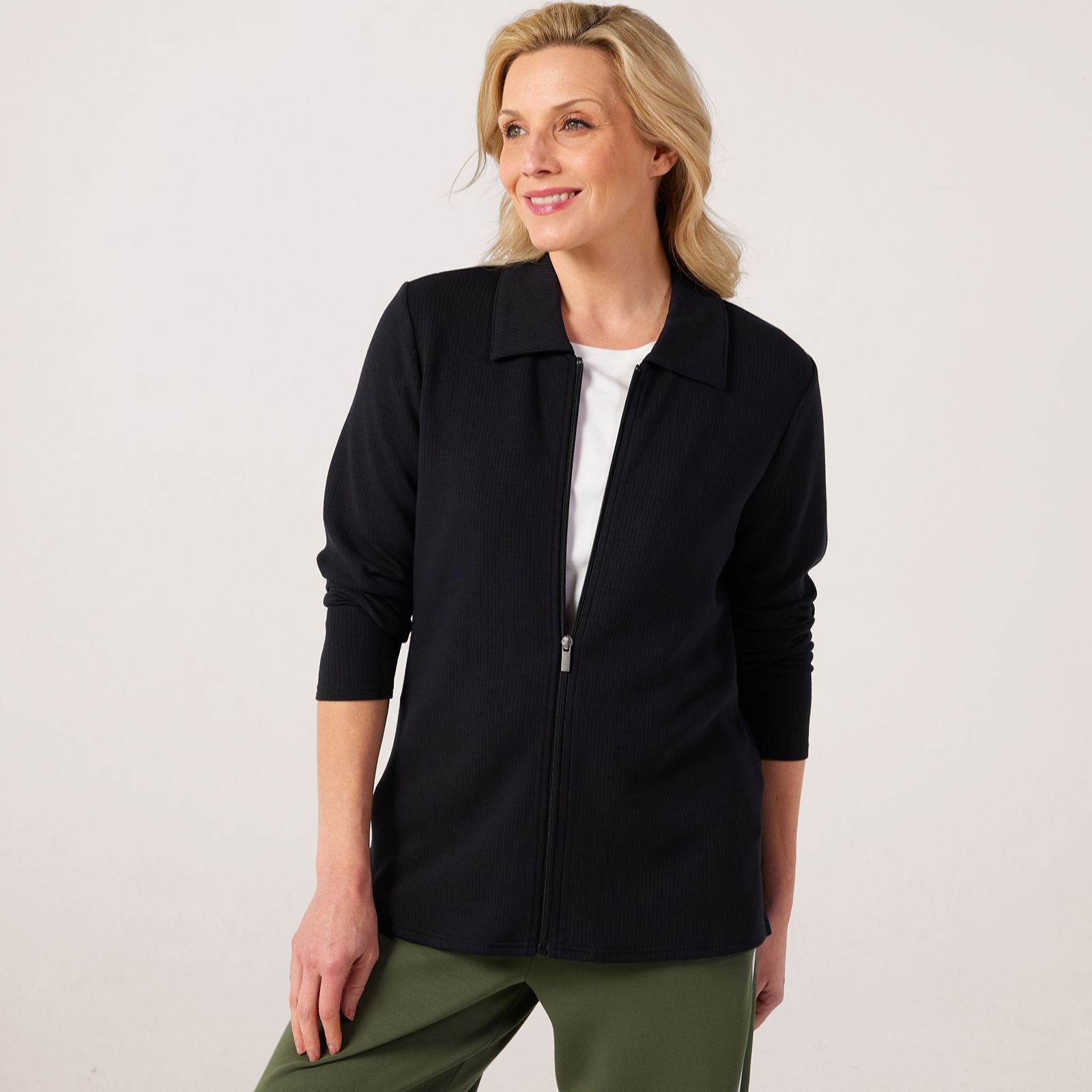Add a touch of effortless polish to your wardrobe with the ribbed zip through top from Ruth Langsford. This versatile piece blends comfort with contemporary style, thanks to its ribbed texture and sleek zip front, making it the perfect staple for everything from casual brunches to relaxed evenings out. For an easy yet chic look, team it with tailored trousers and your favourite trainers.