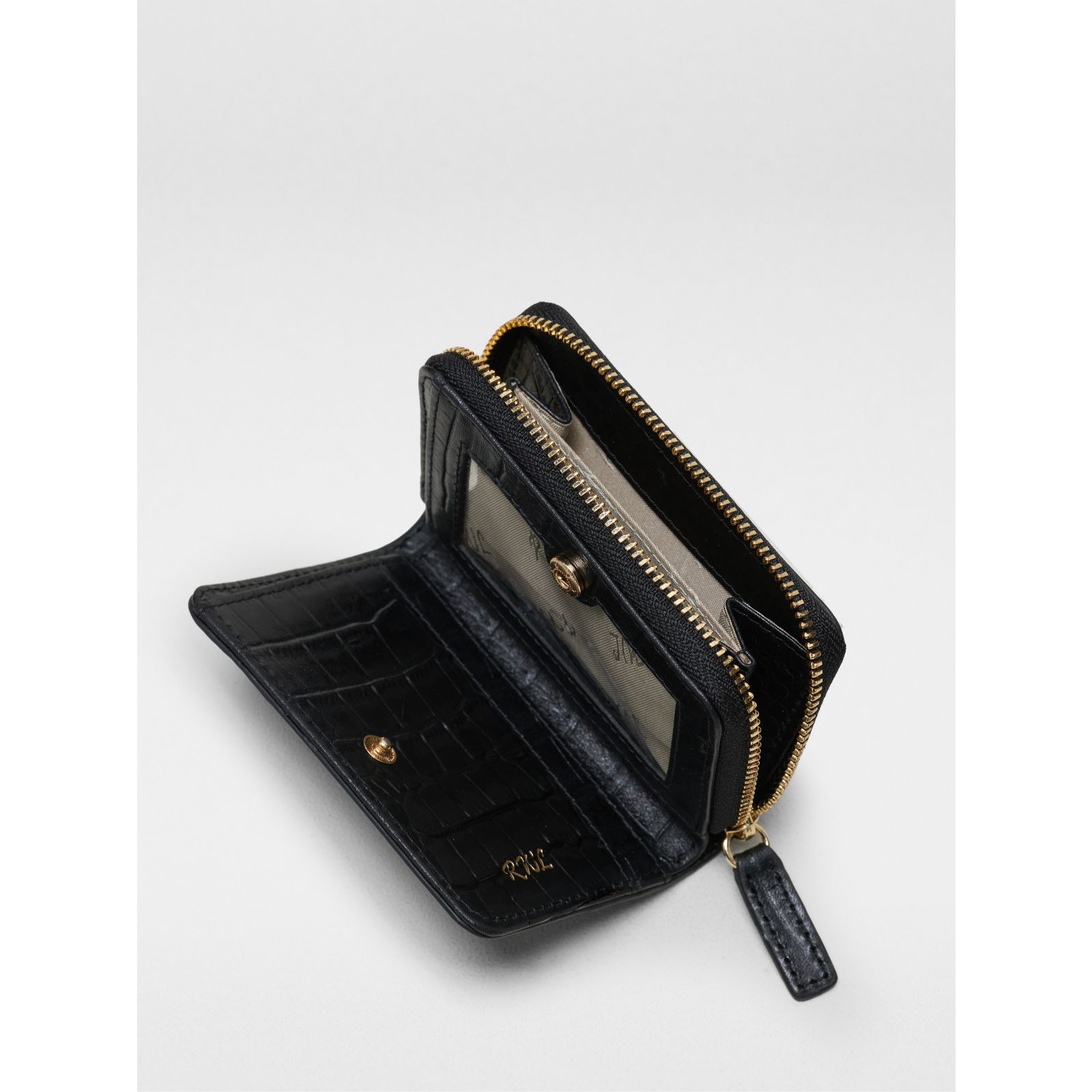 Keep your cards and essentials organised in style with this chic zipped leather card holder from Ruth Langsford. Boasting a compact design and a secure zip around closure, it's perfect for slipping into your pocket or handbag for on-the-go convenience. The card holder features a popper enclosed note and card section, complete with two credit card slots, a transparent window, and a small metal zip around coin section for added functionality. Plus, it's RFID protected for peace of mind.