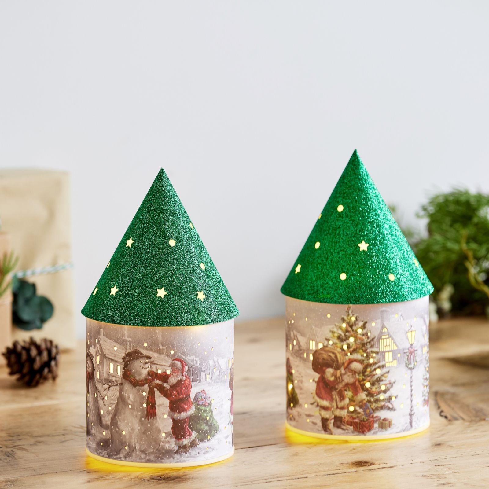 • 2 x pre-lit Christmas scene houses
