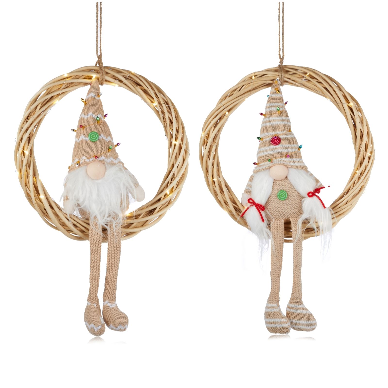 Bring festive cheer to your home with the whimsical Santa Express set of two pre-lit sitting gonks in hoop. Each gonk is adorned with warm white lights that create a cosy glow, perfect for brightening up your mantelpiece, windowsill or festive display. With a built-in timer function, they're easy to set and forget, making them a delightful and low-maintenance addition to your Christmas decor.