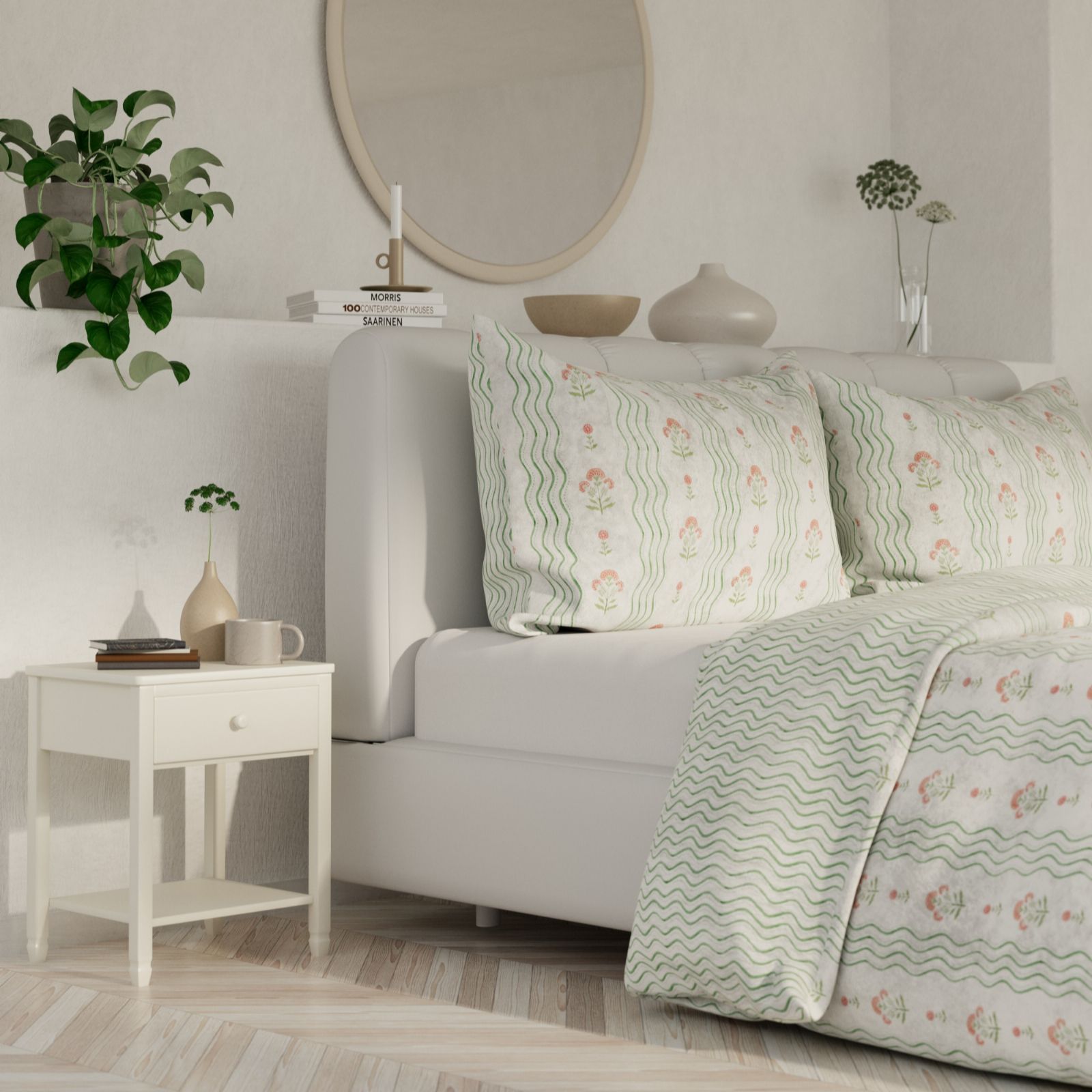 Bring a touch of countryside charm to your bedroom with this reversible rustic floral duvet set from Sara by Sara Davies. Crafted from a soft cotton blend, it features a digitally printed floral design on one side and a coordinating undulating stripe on the reverse, giving you two looks in one. Perfect for refreshing your space with ease, this three-piece set includes a duvet cover and two pillowcases to complete your bed in style.