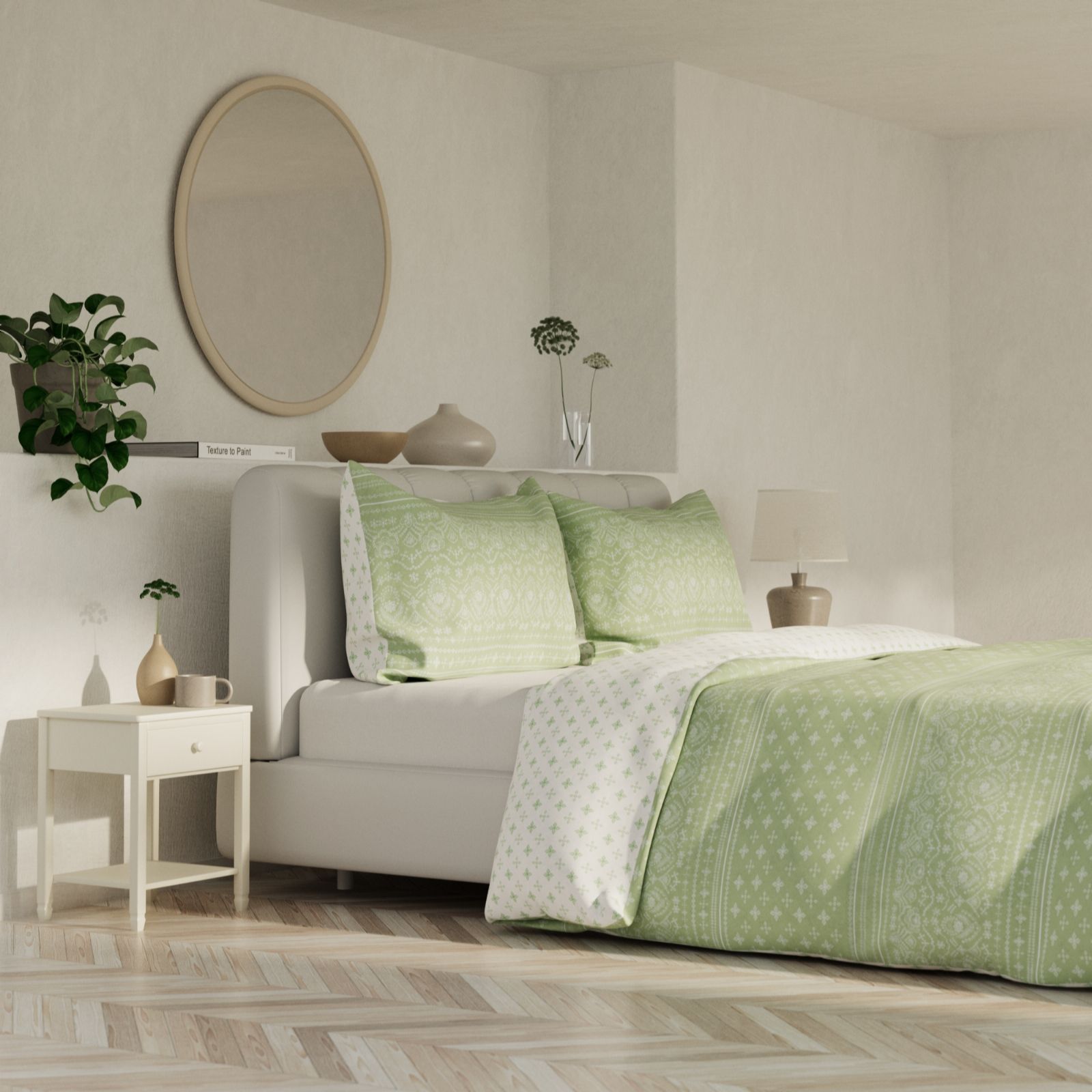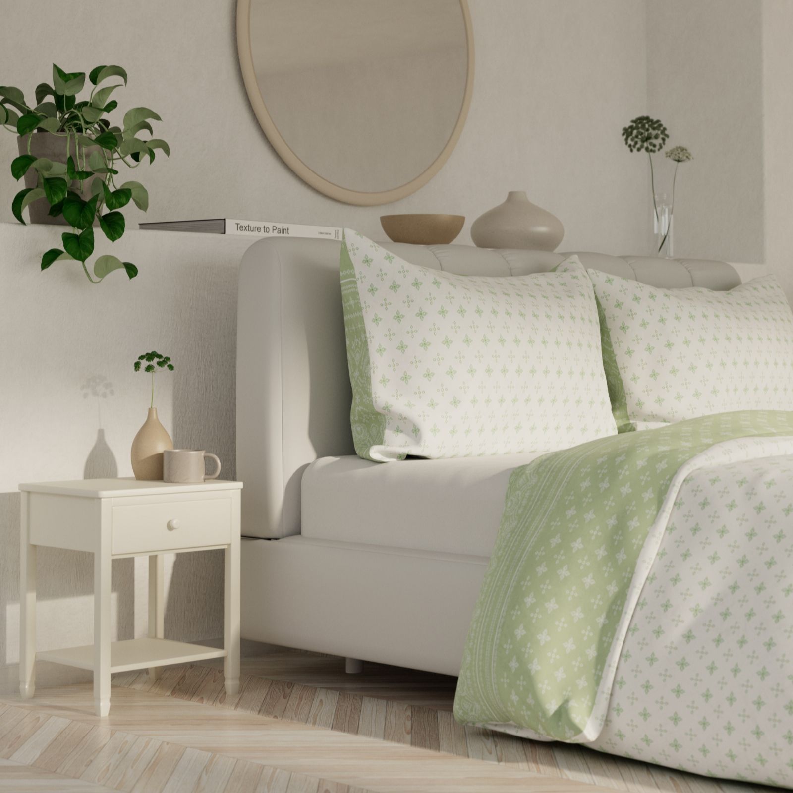- Button closure on duvet, envelope closure on pillowcases