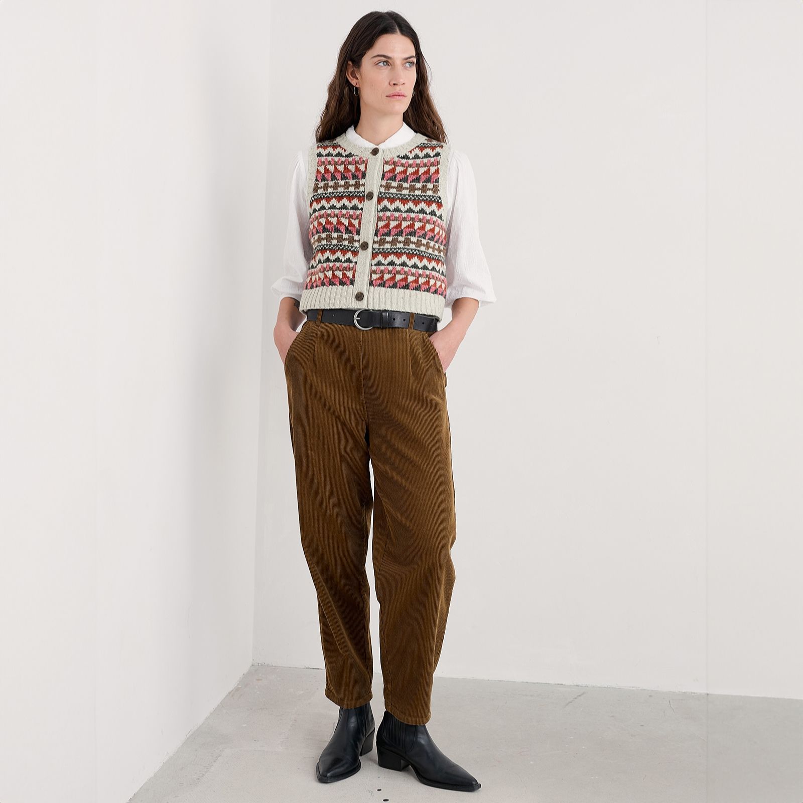 Add a touch of heritage charm to your wardrobe with the Dawson Pick Vest from Seasalt Cornwall. This sleeveless, crew neck sweater vest showcases a traditional Fair Isle stitch, ribbed trims and mock horn buttons, making it perfect for layering over shirts or dresses for a cosy, timeless look. Try pairing it with crisp tailoring or relaxed denim for effortless style through the seasons.
