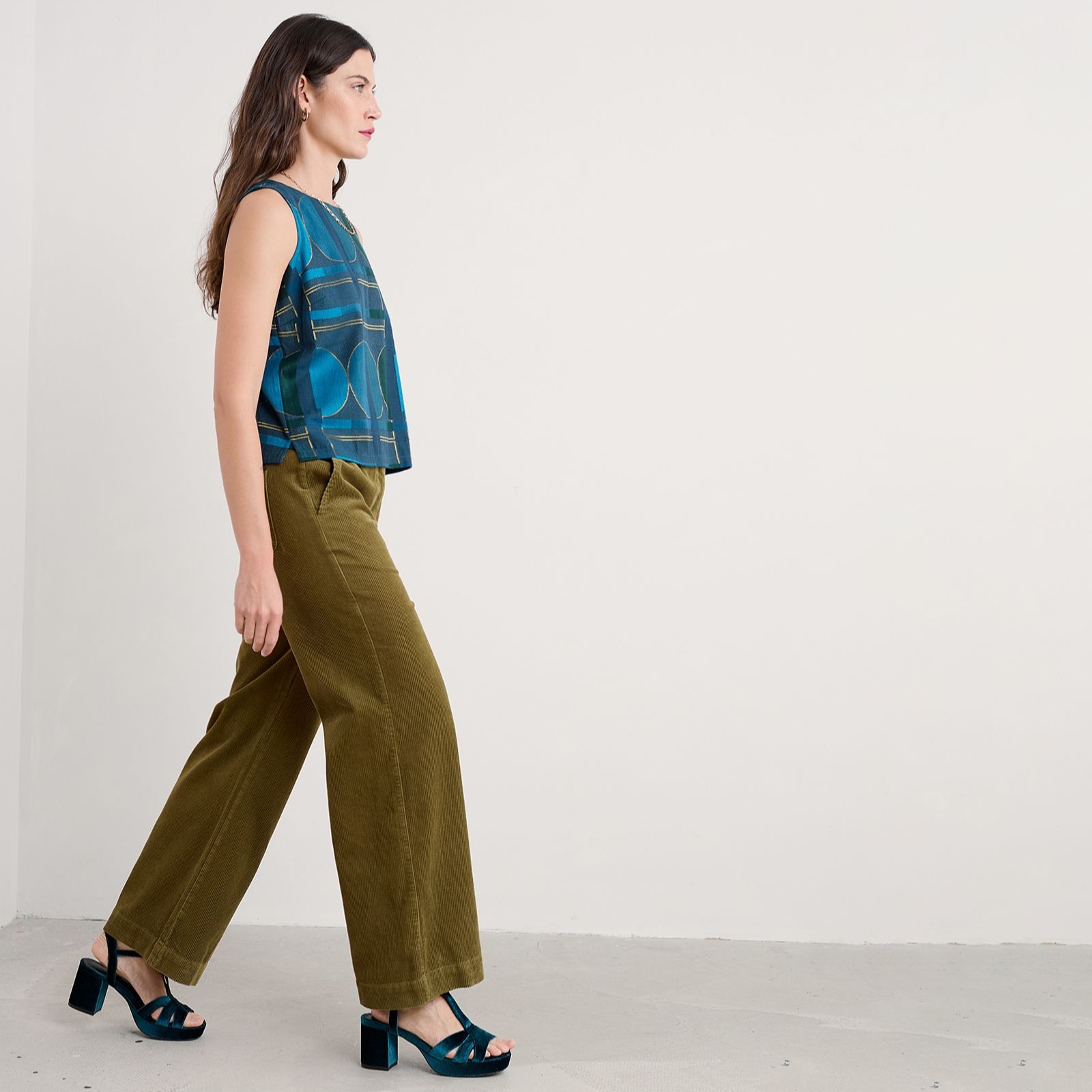 Bring a touch of retro charm to your wardrobe with the Dillwyn Trouser from Seasalt Cornwall. The wide leg silhouette and slanted front pockets offer a relaxed yet polished look, while the unique hemline nods to vintage style. Perfect for workdays, weekend outings or leisurely strolls, these trousers are effortlessly versatile. For an easy outfit, pair with a crisp white tee.