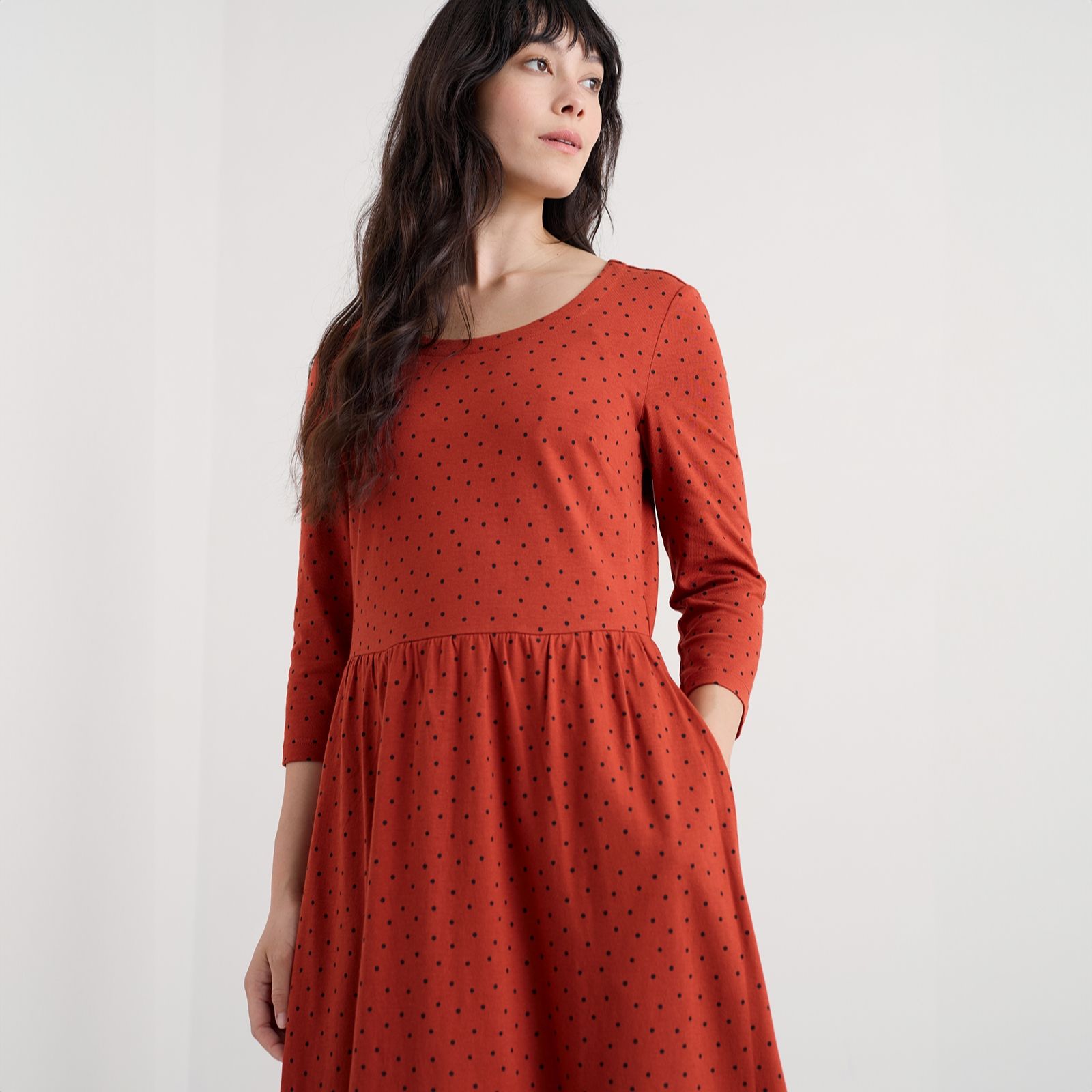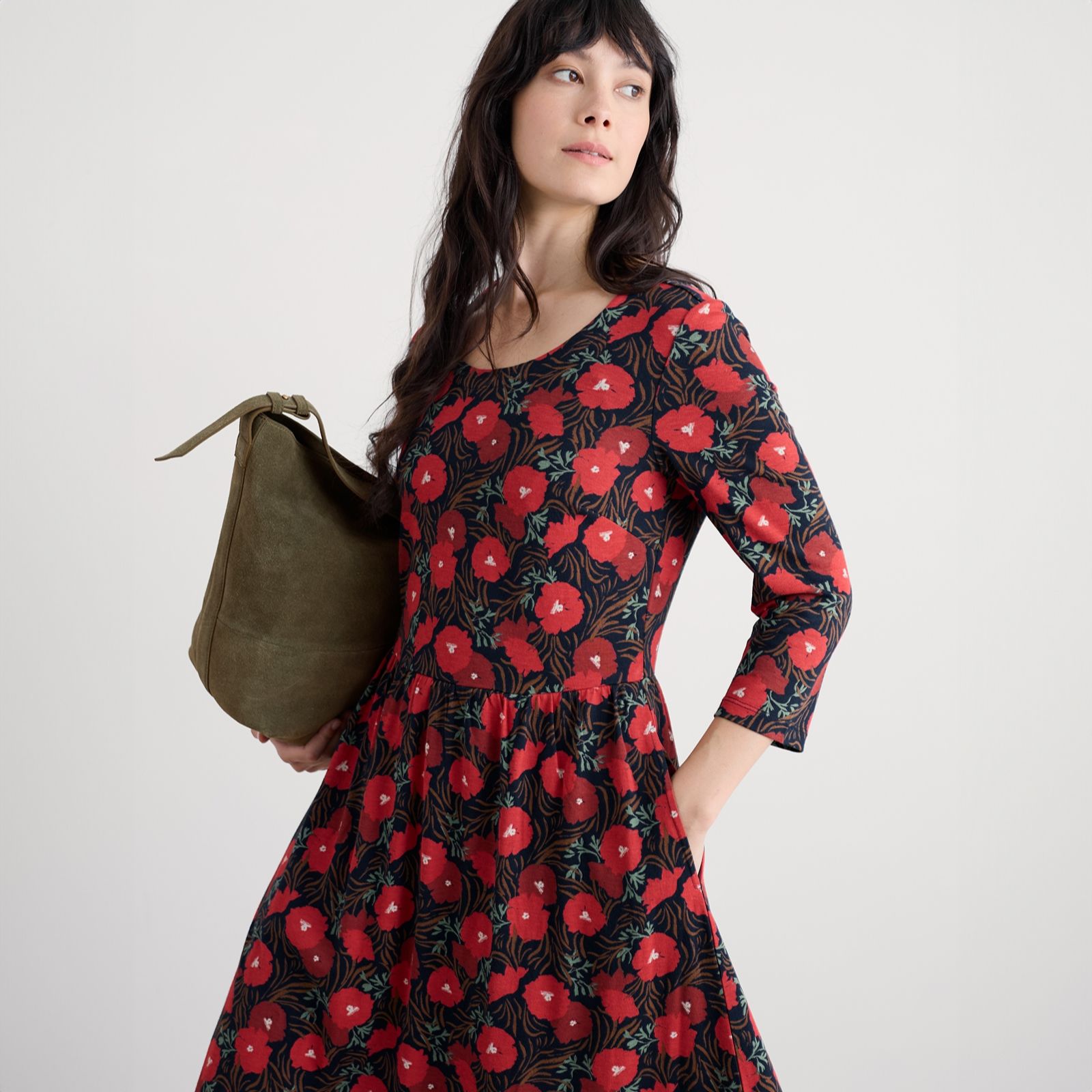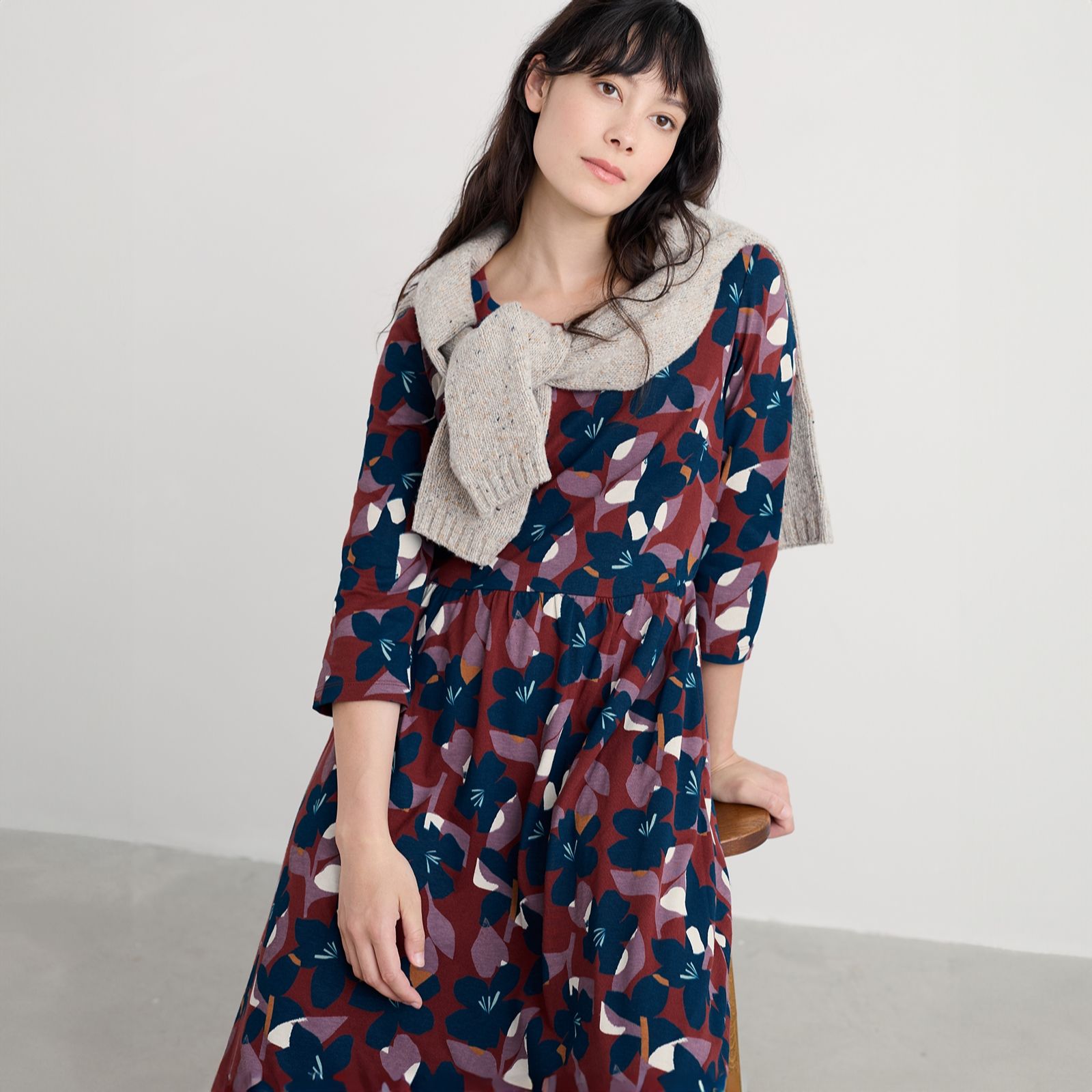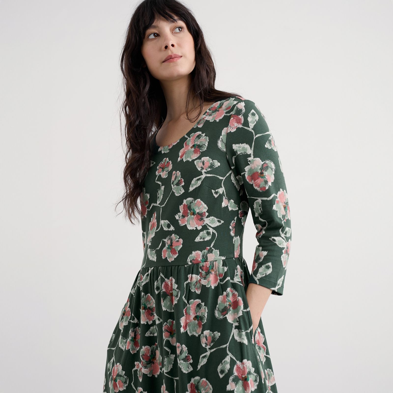 Fall in love with your autumn wardrobe with a little help from Seasalt Cornwall's bestselling Emily dress. Showcasing a gorgeous all-over print, it features a flattering fit-and-flare design with 3/4 length sleeves and inseam pockets, making it an ideal daytime dress to take you through the season. Whether you layer it under your favourite jumper or wear it by itself with hardy boots or flats, this dress is the one you'll reach for to elevate your everyday look time and time again.