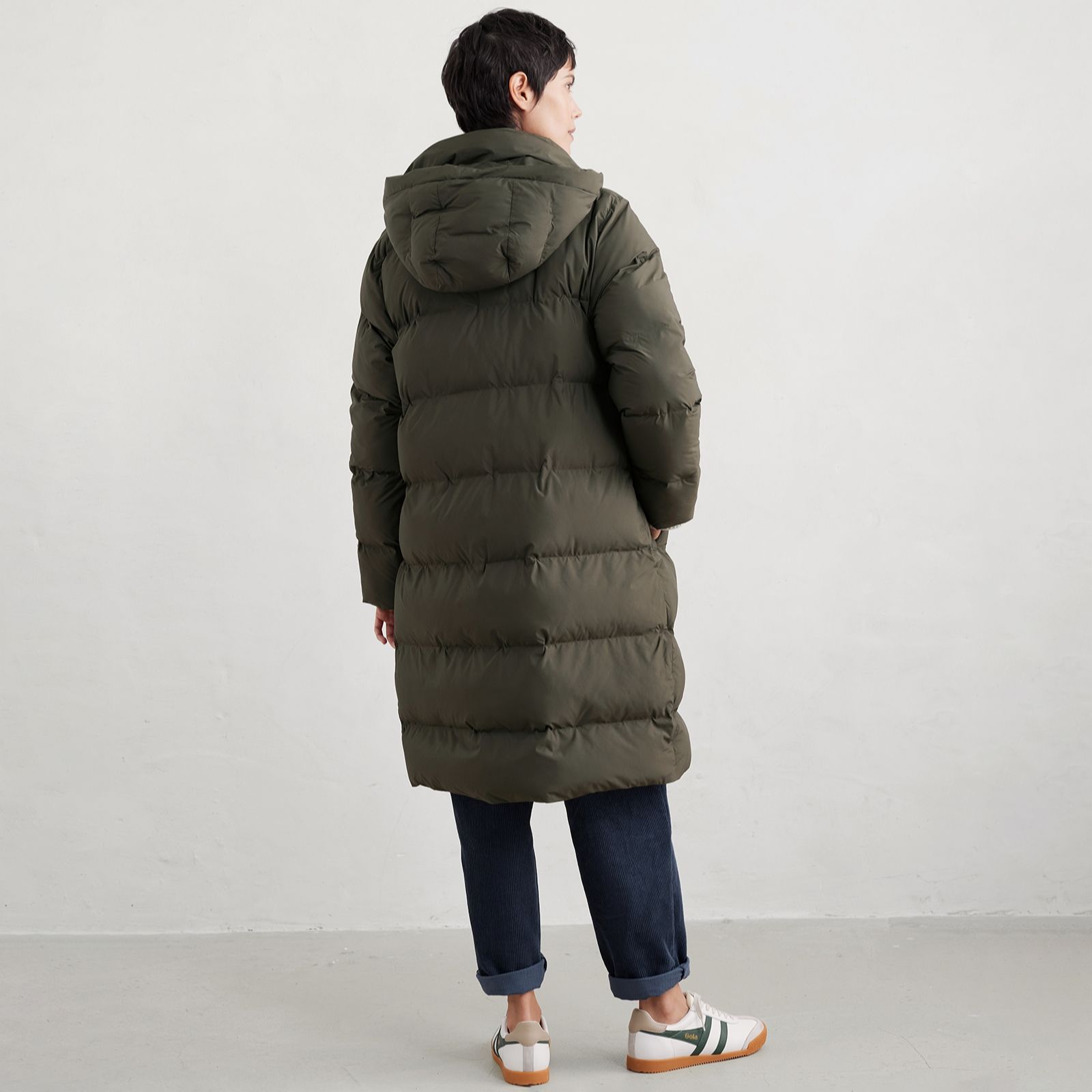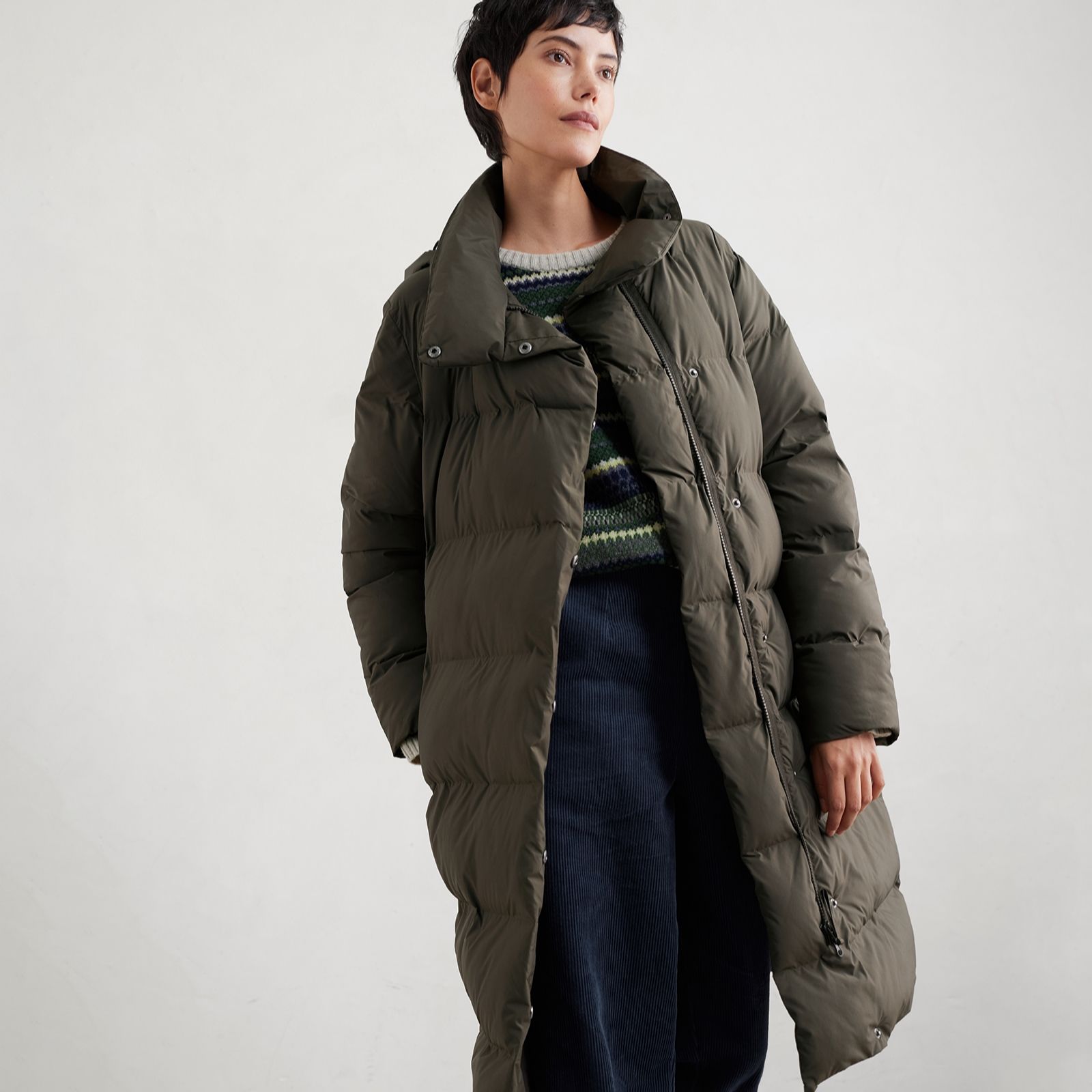 Embrace rainy days in style with the Holywell Bay coat from Seasalt Cornwall, a knee-length waterproof puffer designed to keep you cosy season after season. With its detachable hood, zip-up pockets and clever internal phone pocket, this coat blends practicality with warmth thanks to its fibre quilting. Wear it for brisk walks, busy commutes or weekend adventures just add chunky boots and an oversized scarf for an effortlessly chic look.