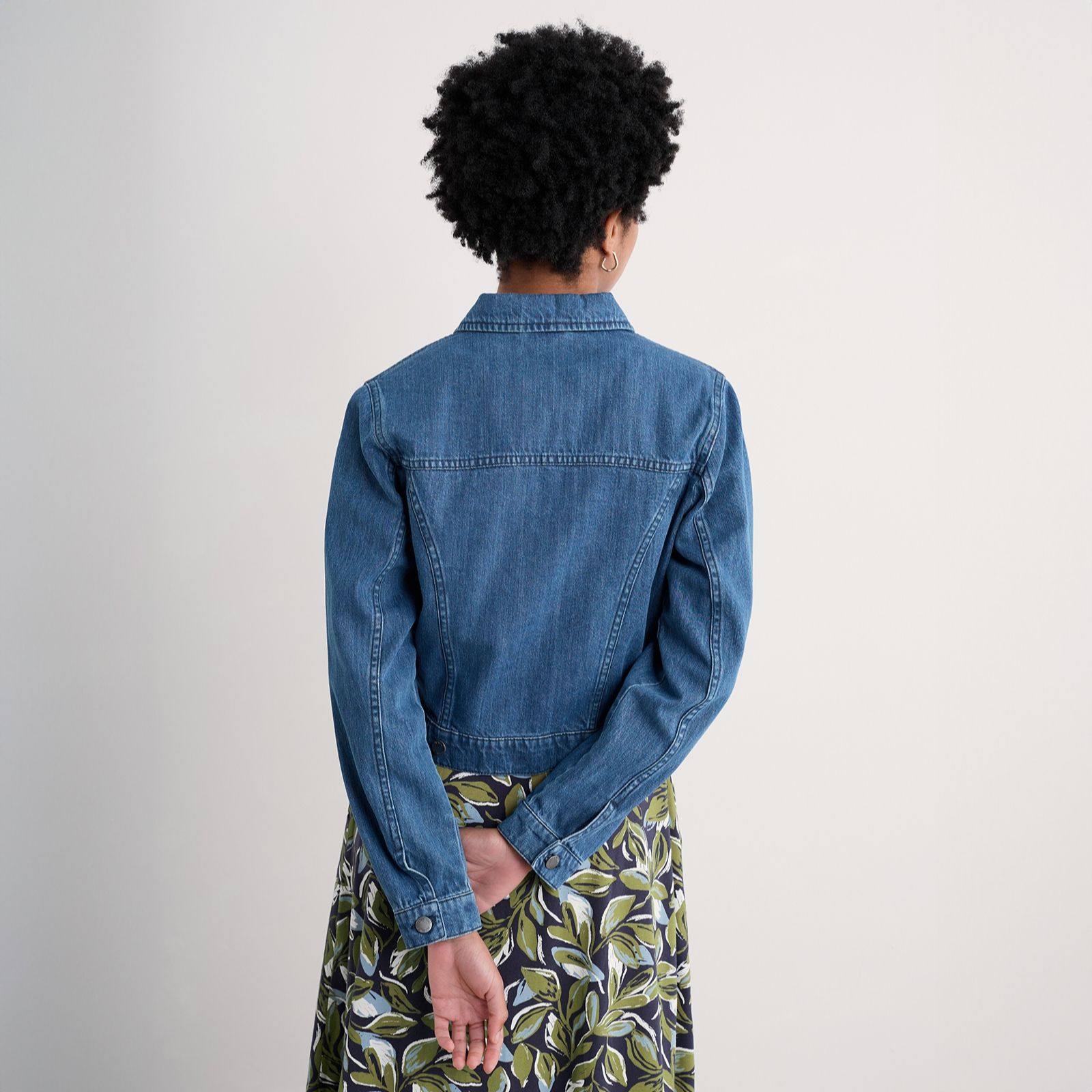 Embrace classic style with the Seasalt Cornwall Levan Well Jacket. This denim jacket is crafted from non-stretch organic cotton and features a panelled shape with workwear details, including metal shank buttons, twin needle stitching and a button and tab adjuster at the back. Perfect for layering over casual outfits or adding a touch of rugged charm to a more refined look, this jacket is versatile enough for any occasion.