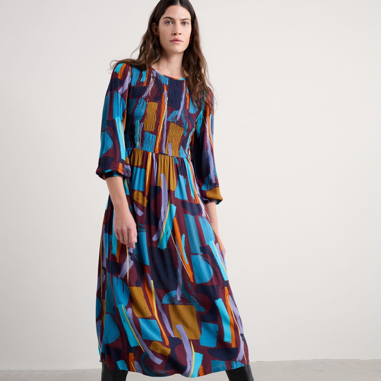 Bring a touch of countryside charm to your wardrobe with the Meadowsweet Dress from Seasalt Cornwall, a standard-fit style featuring a beautifully smocked bodice, flowing long sleeves and discreet hidden pockets. Its relaxed silhouette makes it perfect for everything from brunch with friends to leisurely walks or even a casual office day. Style it with ankle boots and a cosy knit for effortless seasonal appeal.