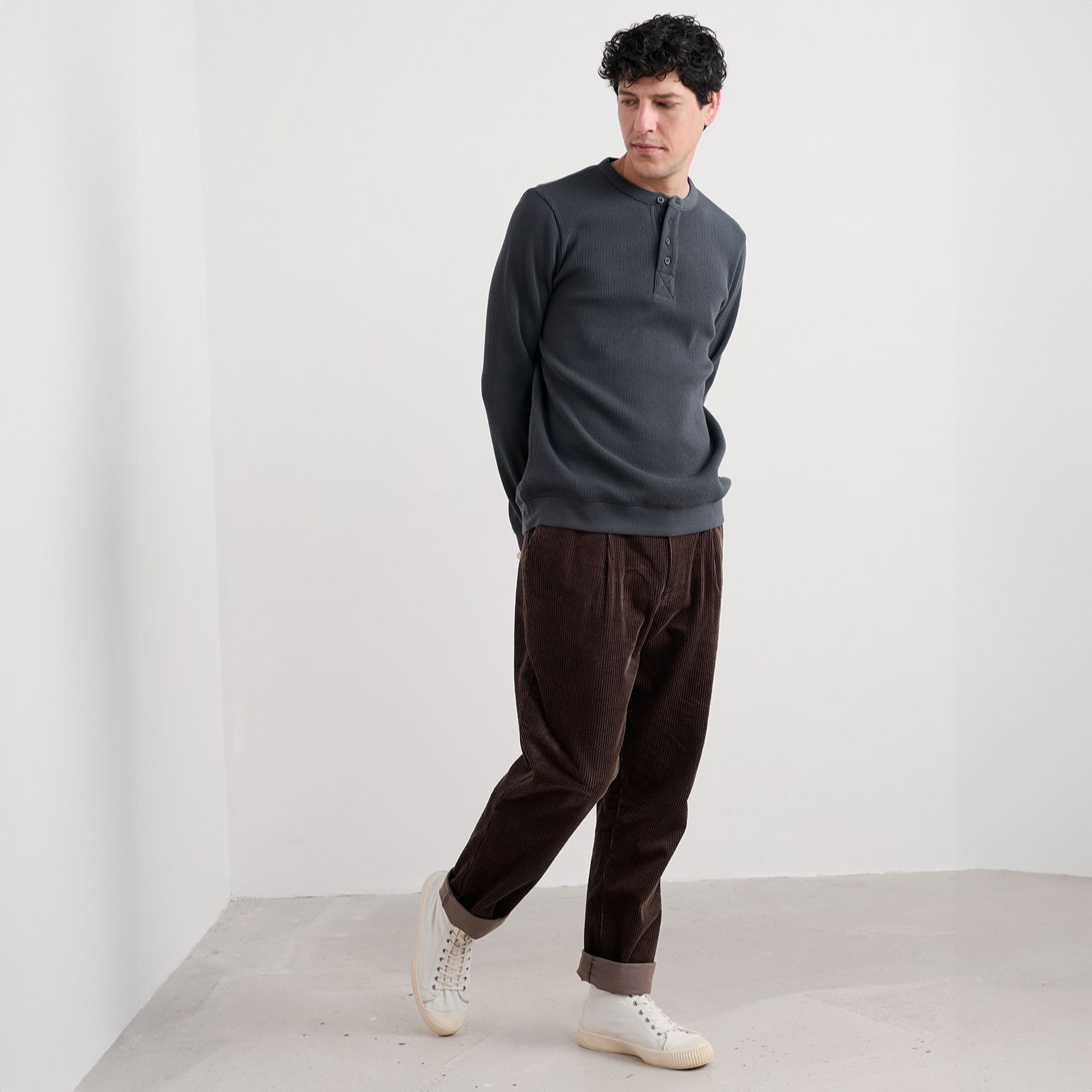 - Henley neckline