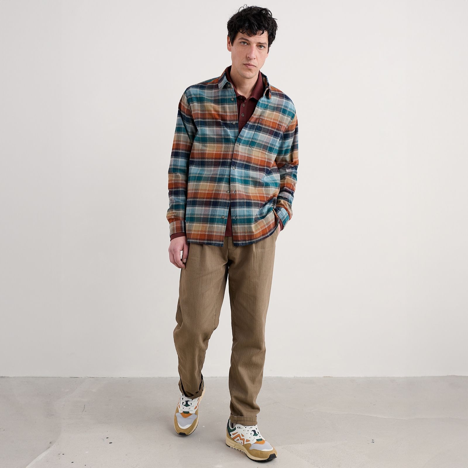 Bring a touch of classic Cornish style to your wardrobe with the Fathomer Shirt from Seasalt Cornwall. This regular fit shirt, crafted from soft brushed flannel and finished with yarn-dyed checks and mock horn buttons, is perfect for layering on cooler days or wearing solo for a relaxed look. Pair it with jeans and boots for a timeless, laid-back outfit that works from weekend strolls to casual gatherings.