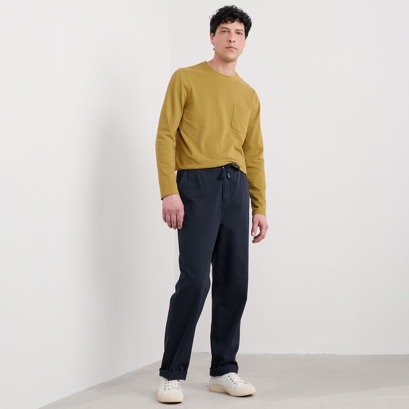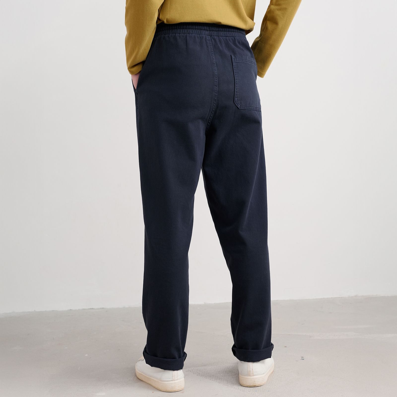 Embrace relaxed coastal style with the men's Hallantide Trouser from Seasalt Cornwall. Crafted from garment-dyed organic cotton for a relaxed look, these trousers feature a handy tie waist drawstring, making them perfect for enjoying carefree strolls by the sea or laid-back weekends in town. Their relaxed fit and thoughtful design ensure they're a key piece in your wardrobe that you can reach for again and again. Pair them with a trendy T-shirt or your favourite jumper for a casual yet polished look.