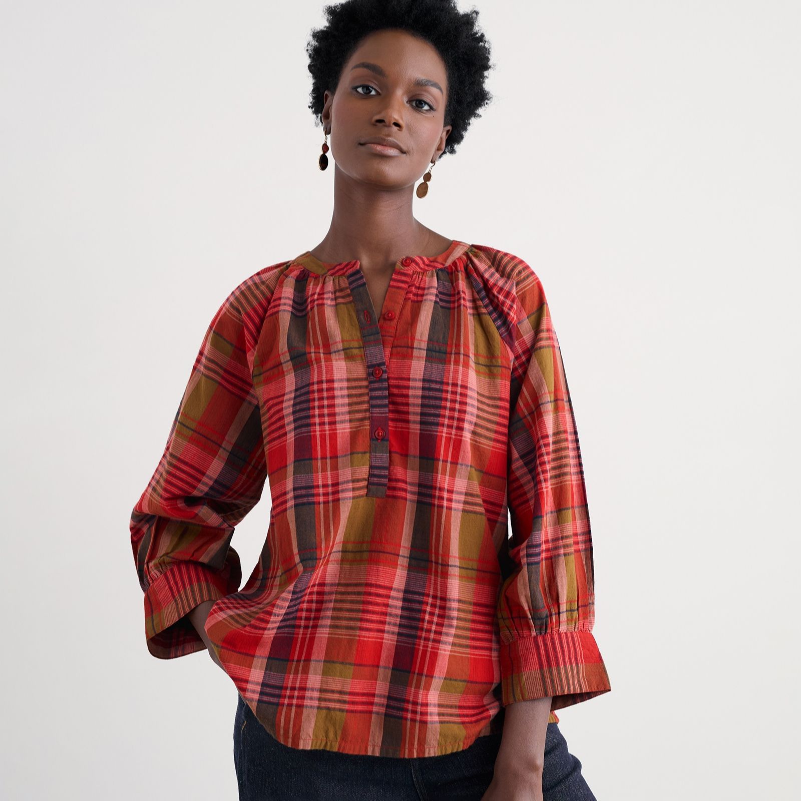Elevate your everyday style with the Moor Grass shirt from Seasalt Cornwall, a relaxed A-line design that flows effortlessly for a laid-back yet polished look. Featuring a buttoned half placket and gently gathered three-quarter length raglan sleeves, this top is perfect for everything from weekend strolls to casual office days. Pair it with slim trousers or denim for a chic, easy-going ensemble.