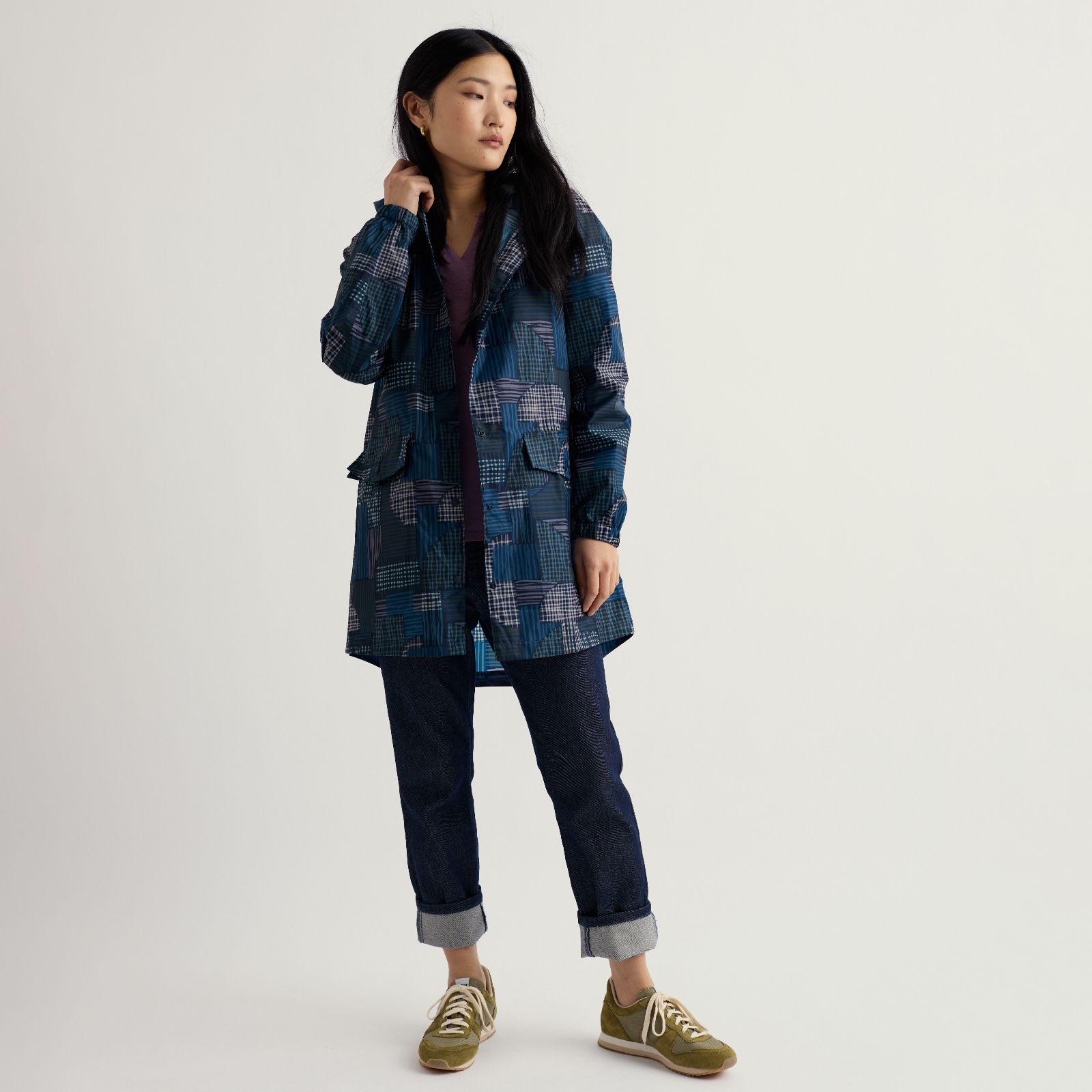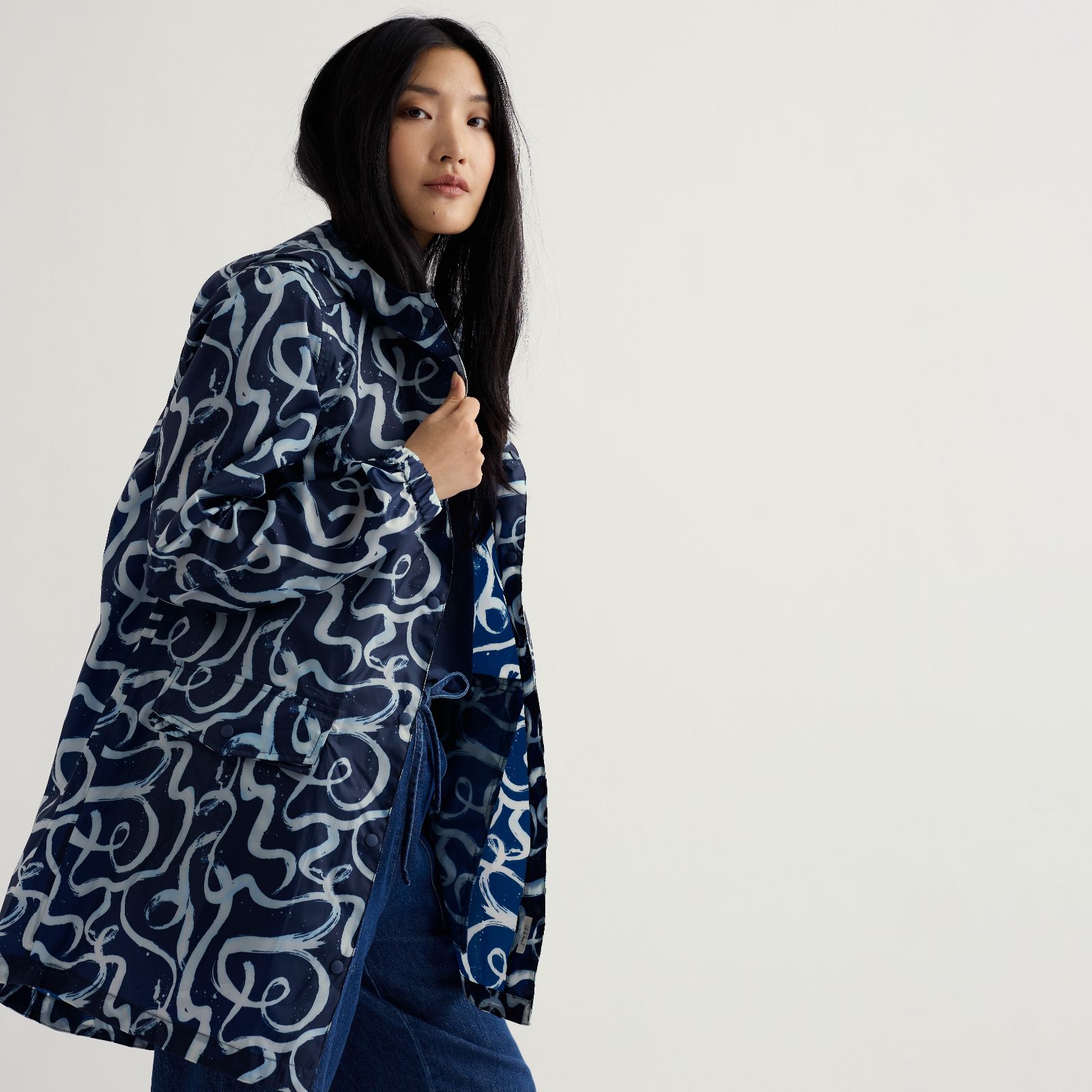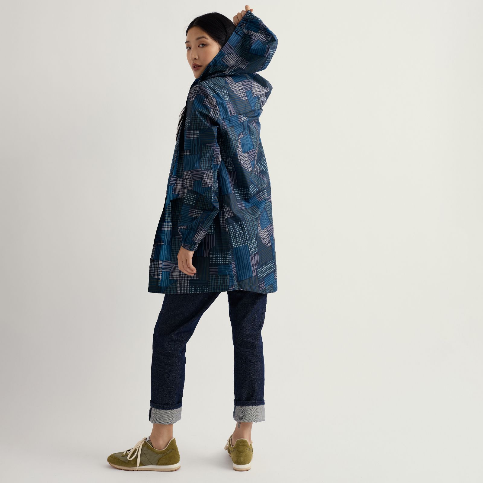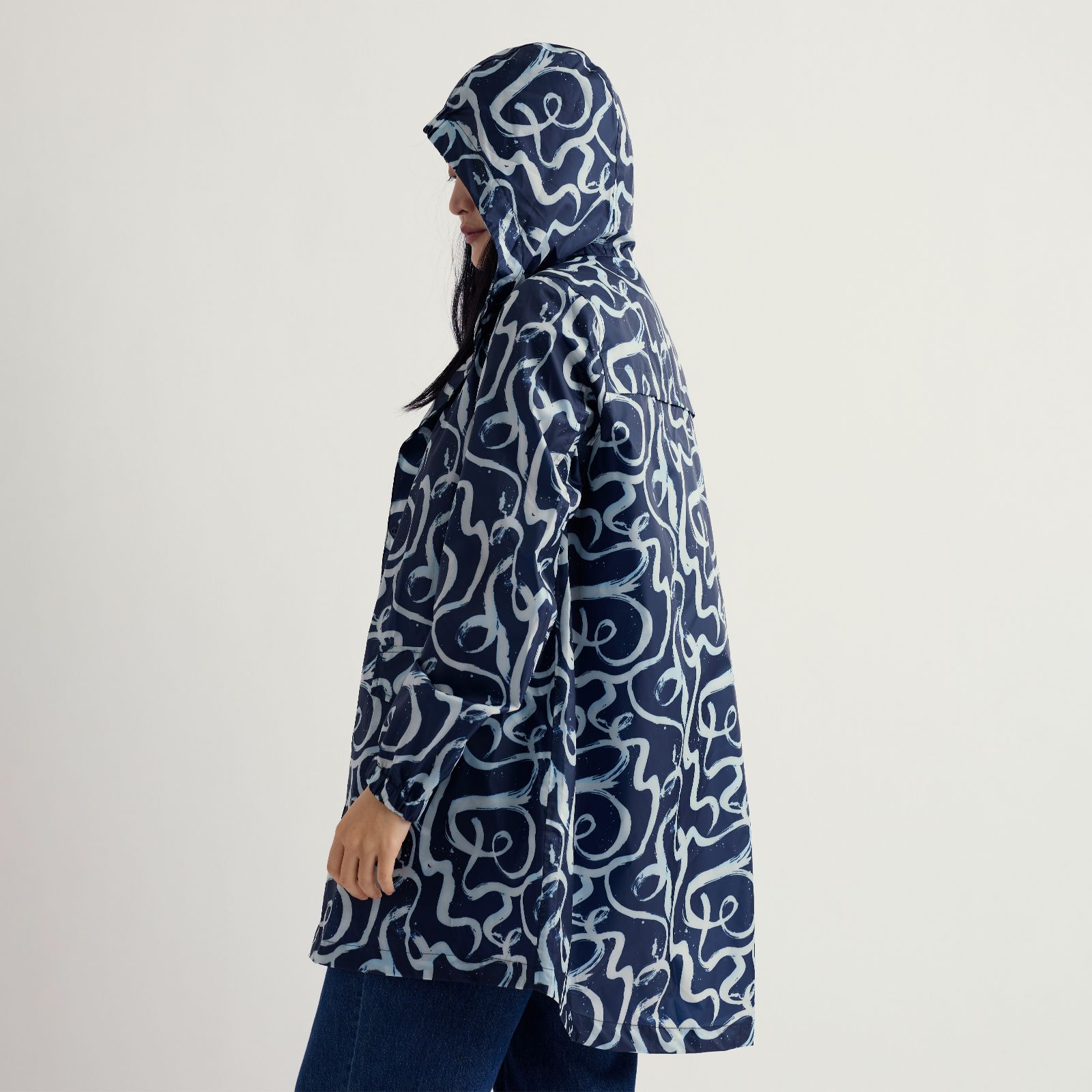 • Elasticated cuffs and three-panel elasticated hood