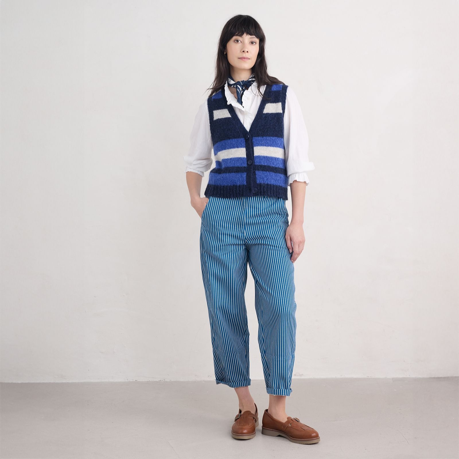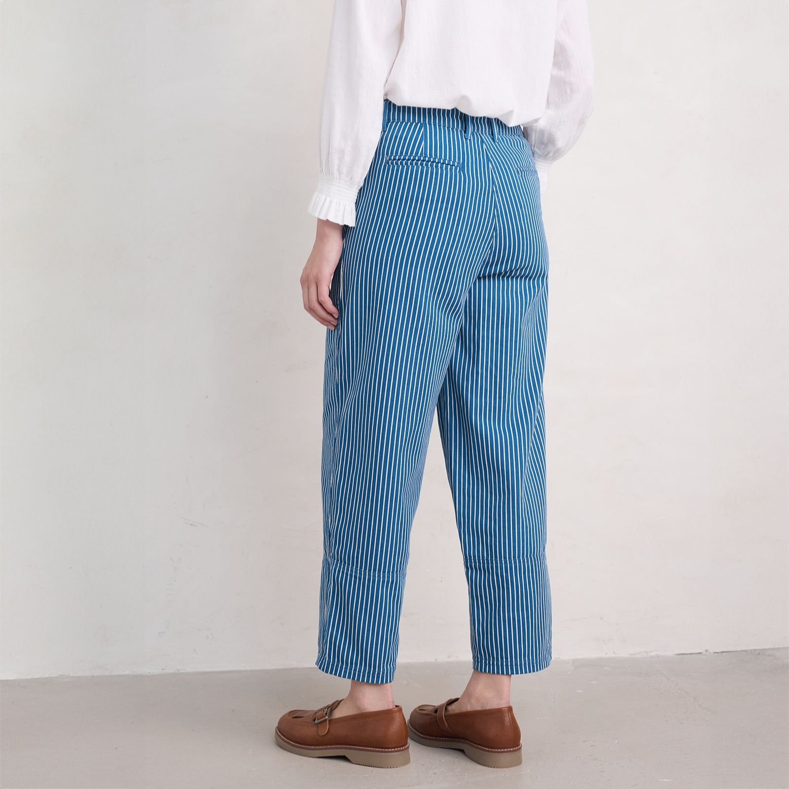 Revamp your wardrobe with the Seasalt Cornwall Painted Forms trousers. These organic cotton cropped trousers boast a relaxed barrel-leg shape, highlighted by clever seaming and a high waistband. Perfect for casual outings or relaxed weekends, the timeless stripe print offers a look that never goes out of style. Pair them with a simple t-shirt and sandals for a laid-back look or dress them up with a blouse and loafers for a more polished ensemble.