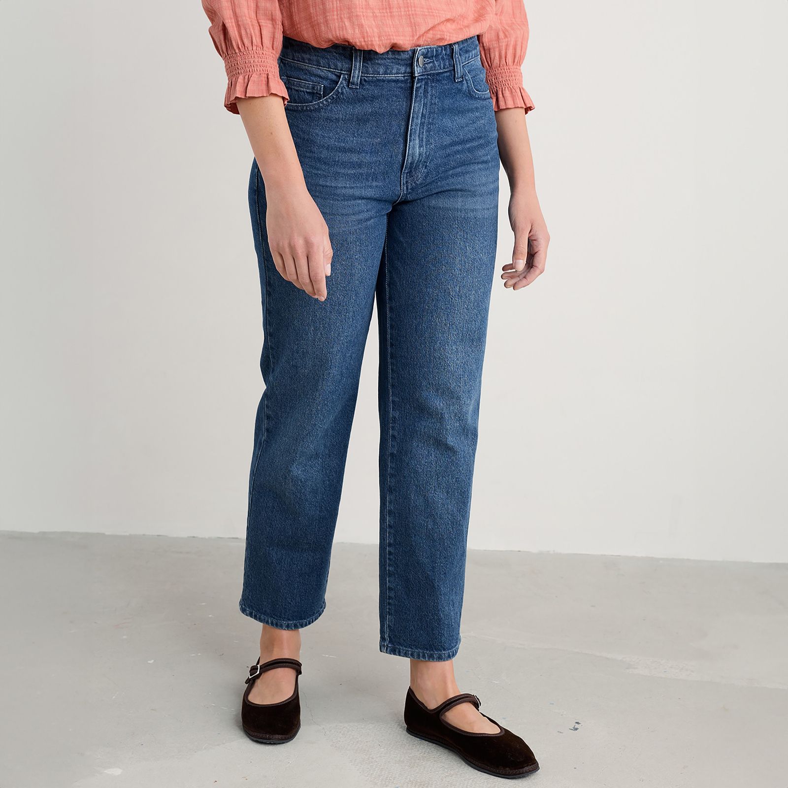 - Straight leg fit with mid rise