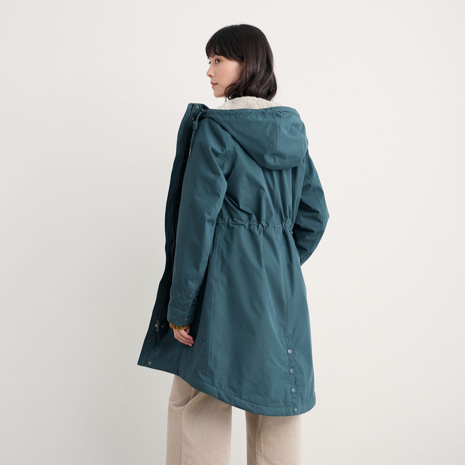 you'll love this coat's flattering drawcord waist and dipped hemline at the back, offering a flattering silhouette that doesn't compromise on style.