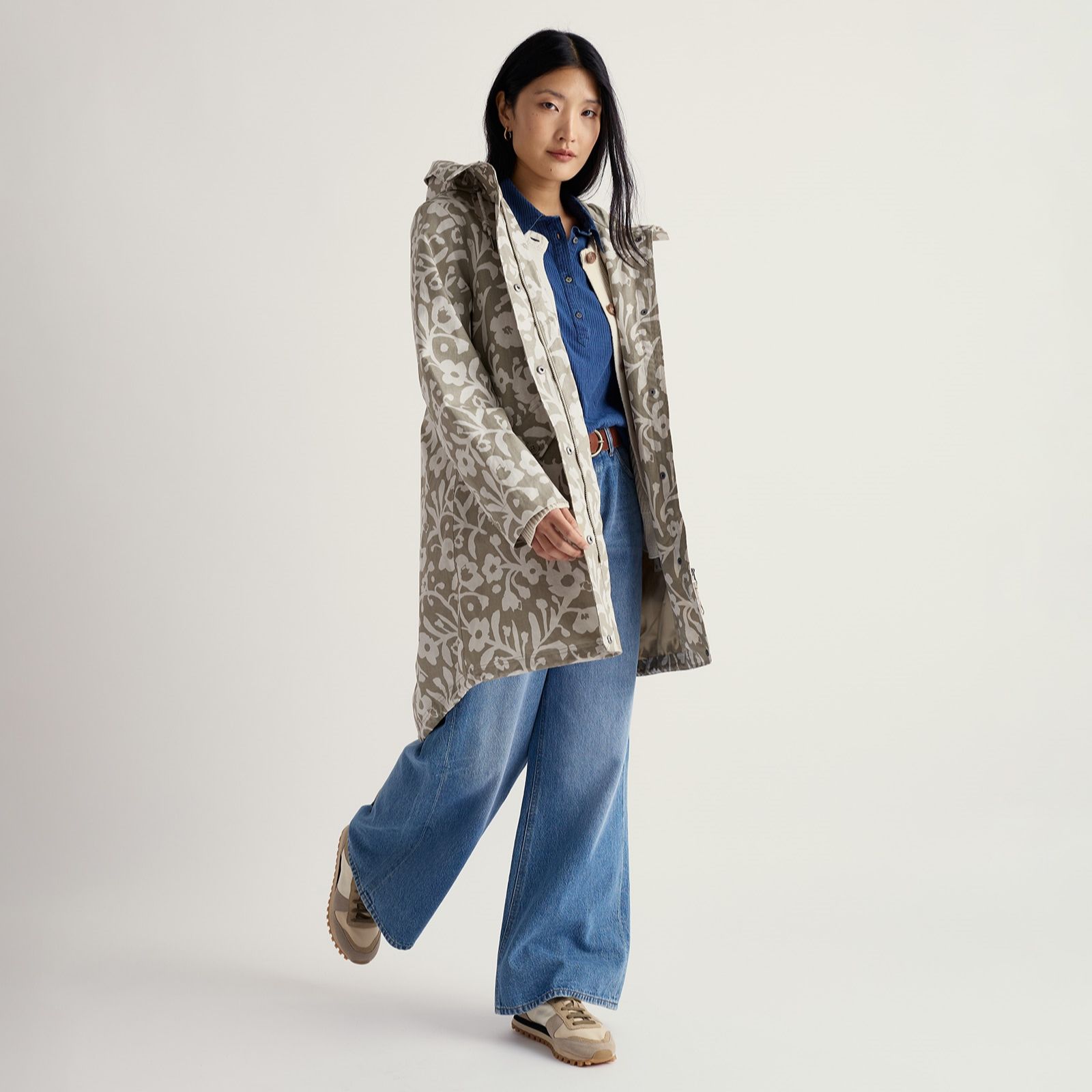 Hike through drizzle or blustery winds in style with the Seafaring printed coat from Seasalt Cornwall, a parka-style raincoat that blends lightweight comfort with practical protection. Its adjustable hood and fishtail hem make it perfect for countryside strolls, coastal walks or city commutes, while the charming print adds a splash of personality. Pair with jeans and boots for an effortlessly chic, weather-ready look.