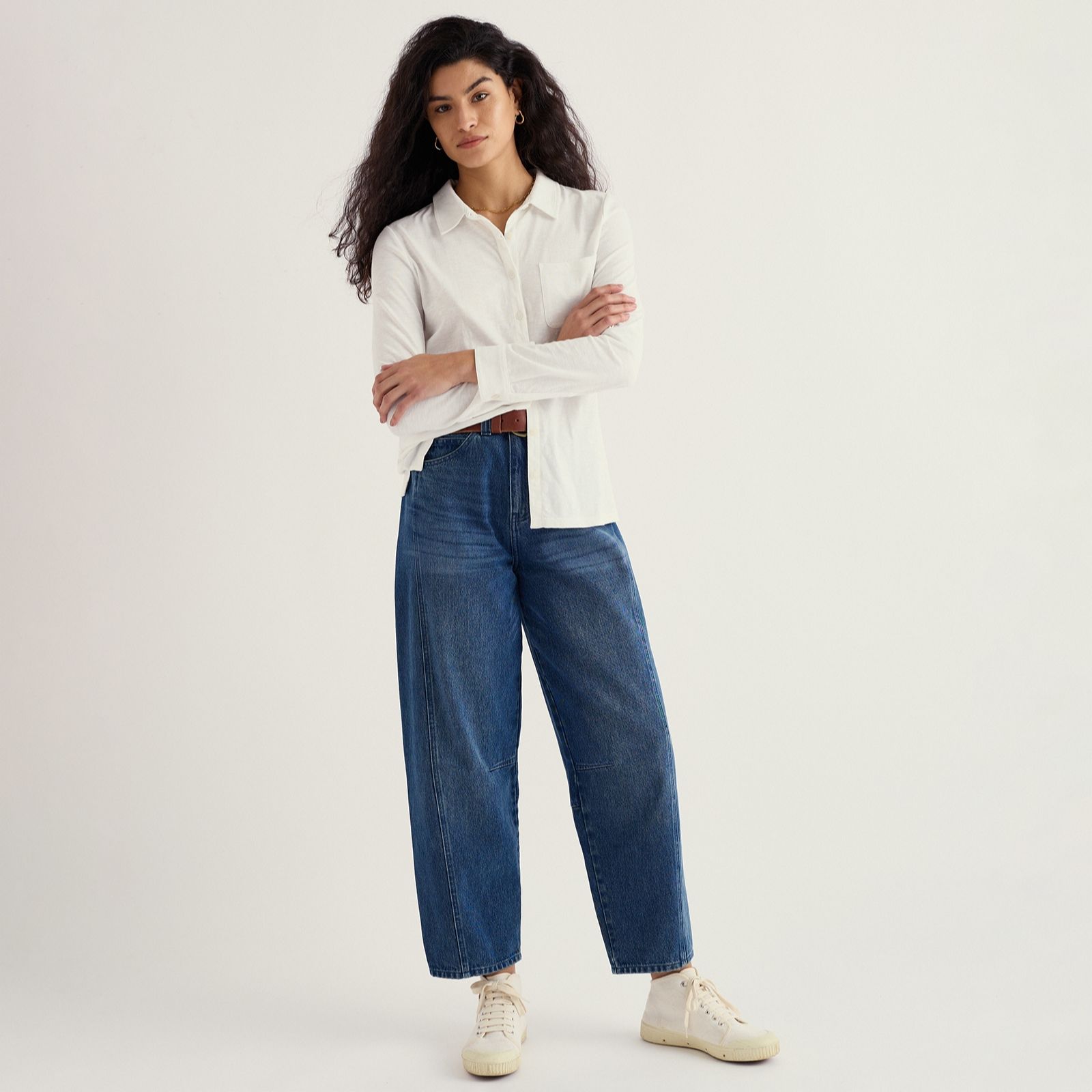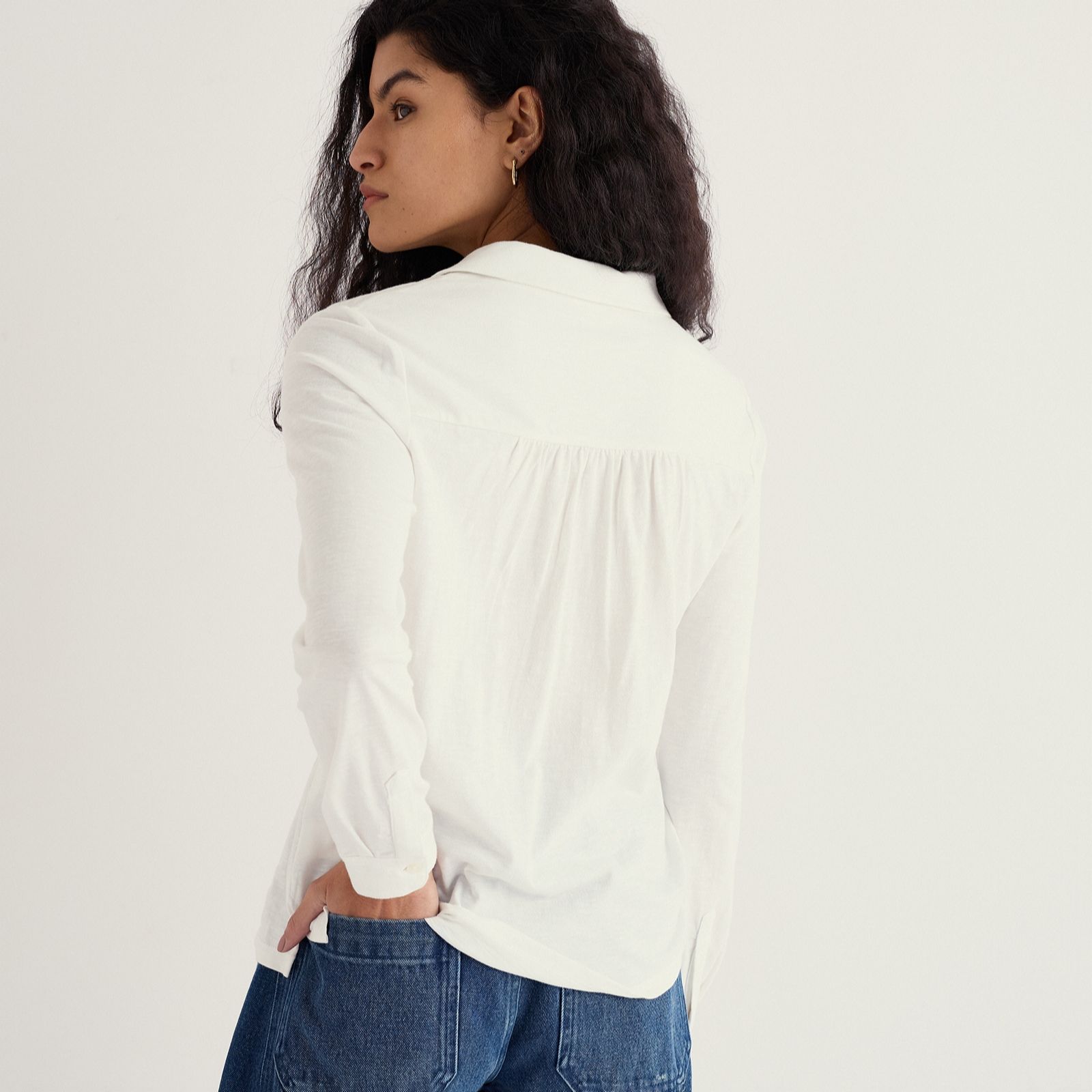 Discover where classic shirt details meet a contemporary silhouette in the Teasel Head Shirt from Seasalt Cornwall. This essential piece is crafted in soft organic cotton jersey for a semi-fitted look that feels as good as it looks. Its button-through front, buttoned cuffs and gently curved hem with side splits make it a versatile choice for relaxed days at home or smart-casual outings. Try styling it open over a vest and jeans for effortless layering.