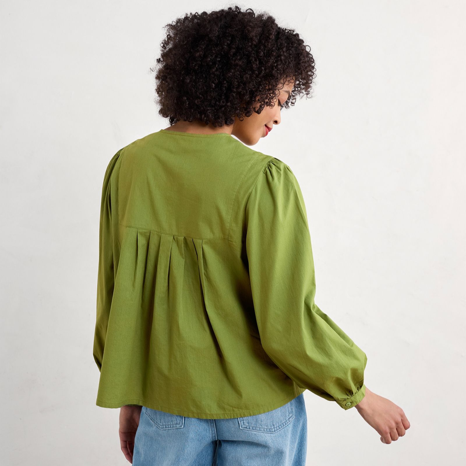 - Blouson sleeves with button cuffs