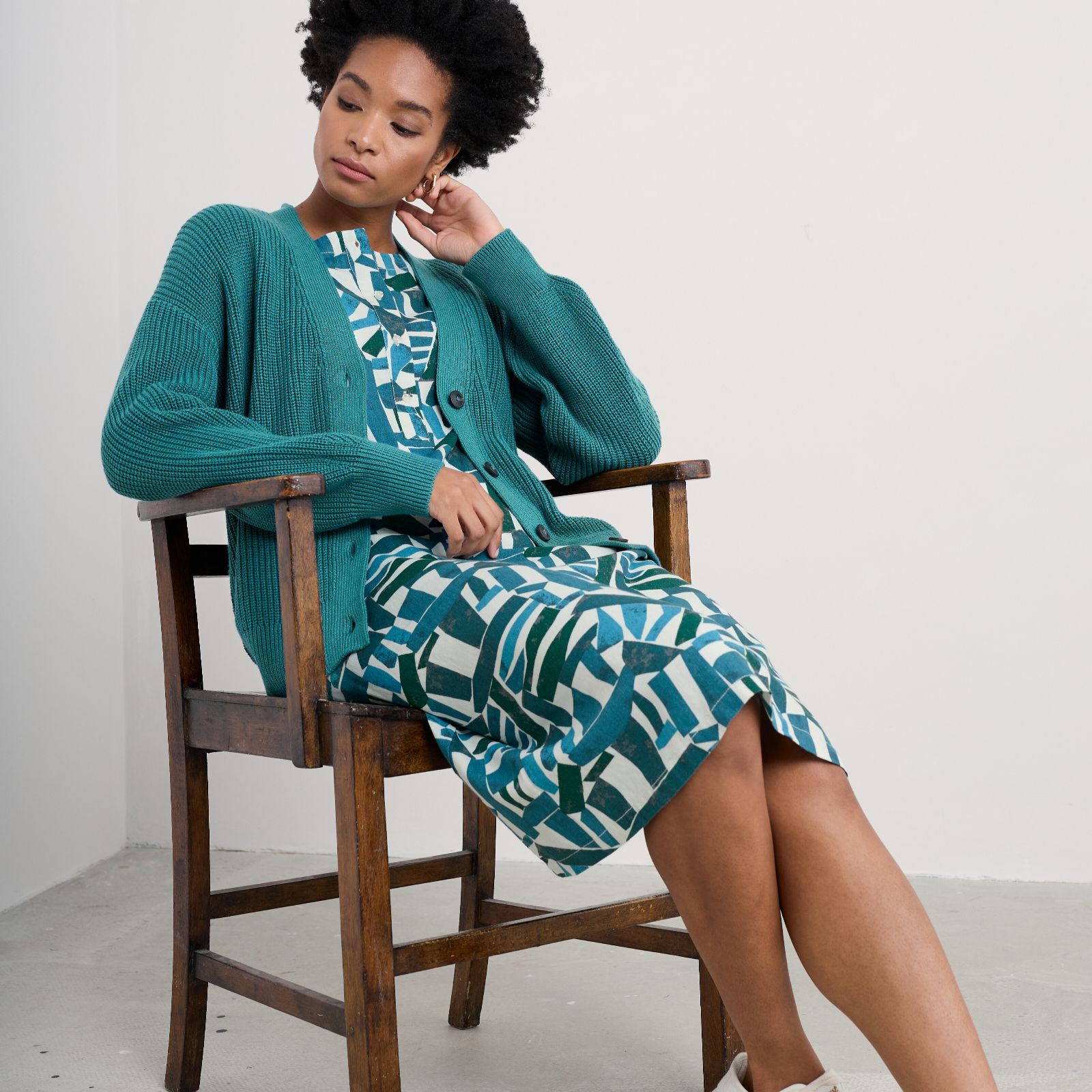 Introducing the Seasalt Cornwall Winding Creek Cardigan, an effortlessly cool addition to your wardrobe. Crafted from organic cotton, this oversized cardigan features dropped shoulders, blouson sleeves, and a V-neckline. The tonal buttons and all-over rib stitch add a lovely, chunky texture. Perfect for layering, this cardigan is versatile enough to wear on casual outings or cosy evenings at home. Pair it with your favourite jeans and a simple top for a stylish, relaxed look.