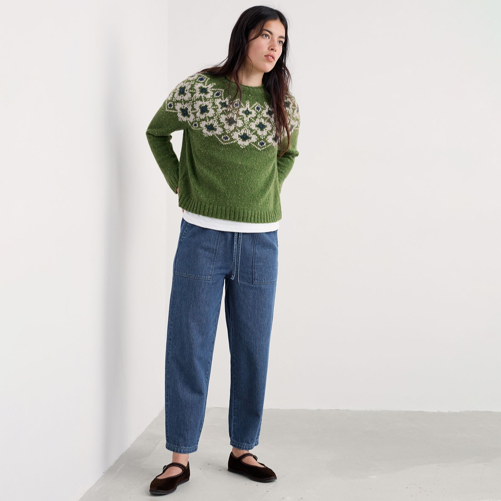 Wrap yourself in the cosy charm of the Johanna jumper from Seasalt Cornwall, featuring a timeless Fair Isle design in a soft three-gauge knit. Its easy fit and raglan sleeves make it perfect for relaxed weekends, countryside strolls or coffee dates, while the jersey roll crew neck adds a laid-back touch. Pair it with jeans and boots for effortless seasonal style.