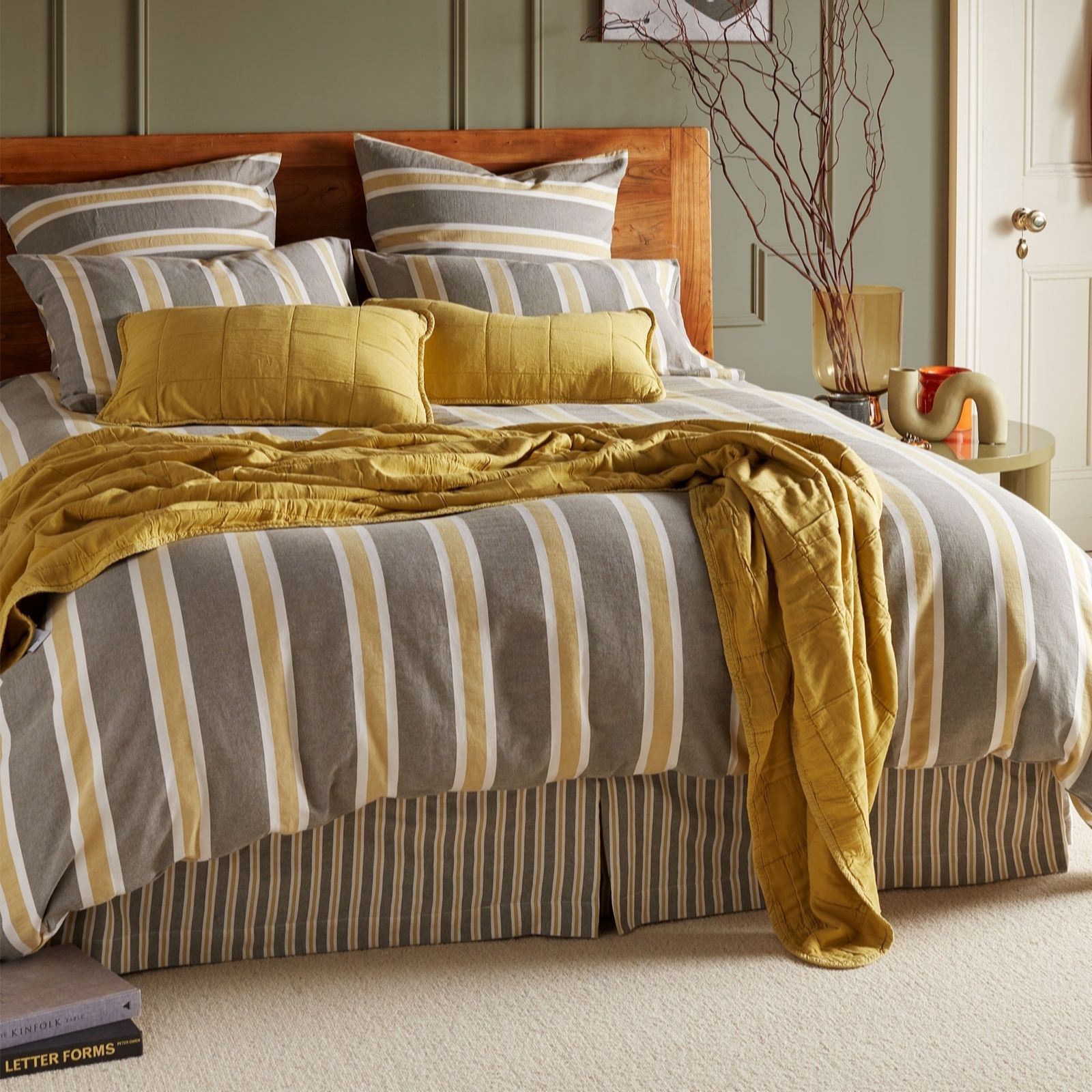 Effortlessly elevate your bedroom with the Sadie 100% organic cotton valance from Secret Linen Store. Timeless stripes and a crisp box pleat style add classic charm while neatly concealing under-bed storage. Designed to coordinate with the Sadie Stripe 3 piece bundle, it features a 41cm drop.