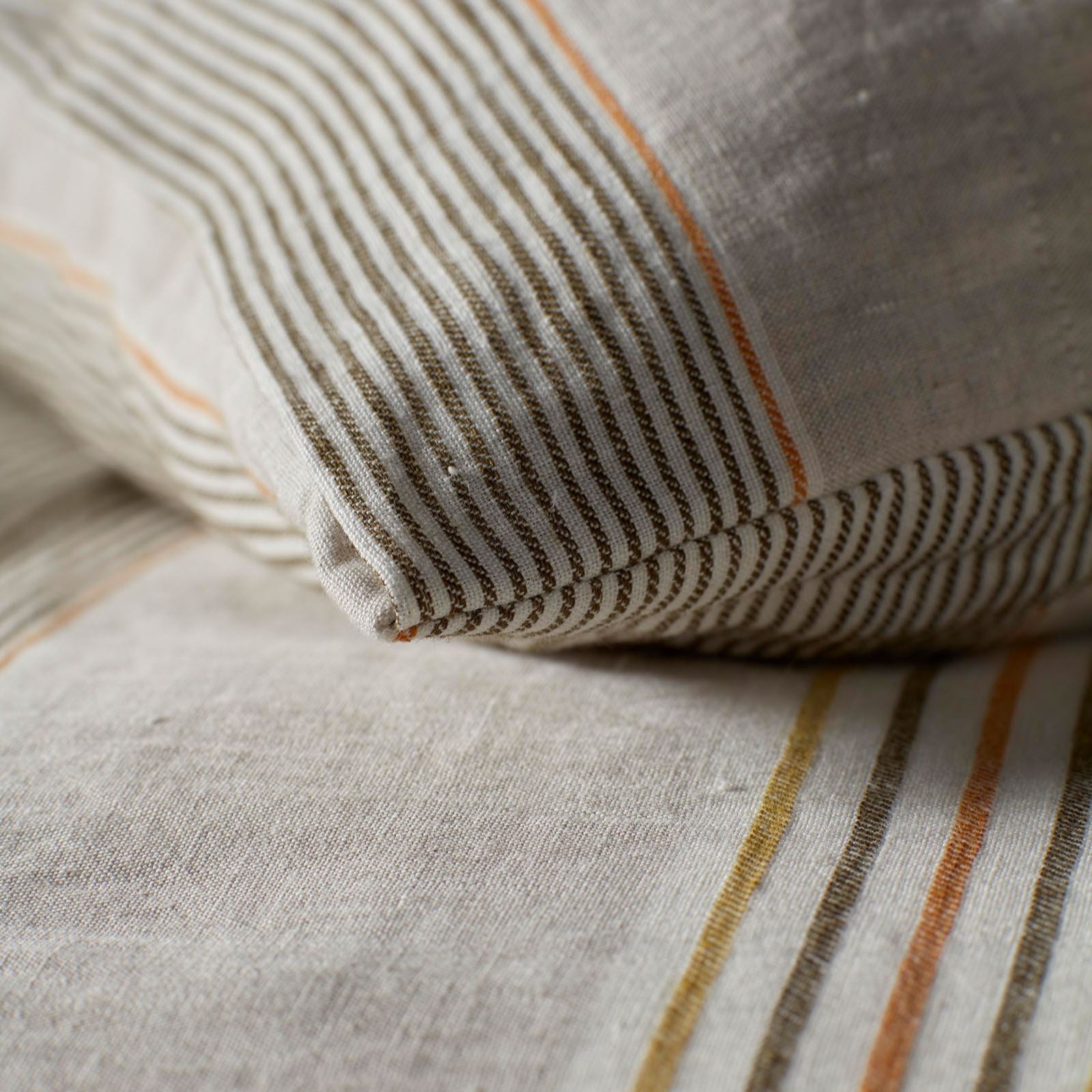 Drift off in style with the Secret Linen Store Sophie Stripe 100% Linen Pillowcase Pair, where dark olive, amber and olive oil stripes dance across a natural background, bringing a relaxed yet refined look to your bedroom. Perfect for refreshing your bedding or adding a touch of effortless elegance, these pillowcases are ideal for everyday comfort and easy to care for.