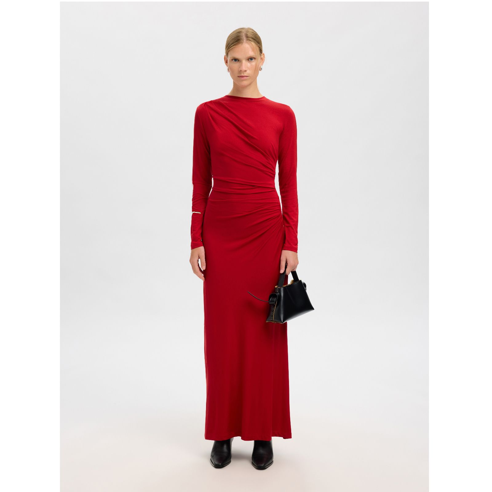 Dress with a contemporary edge in the Ilina asymmetric ruched dress from Selected Femme, combining a modern silhouette with elegant pleated detailing for a distinctive look. Perfect for everything from daytime events to evening gatherings, its long sleeves and regular fit make it a glamorous choice all year round. Style it with ankle boots for a chic daytime outfit or elevate it with a pair of statement earrings for a polished, eye-catching ensemble.