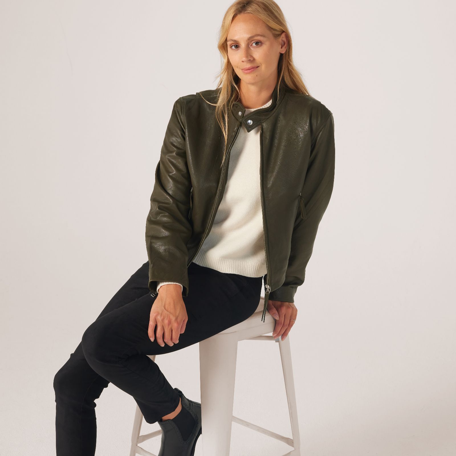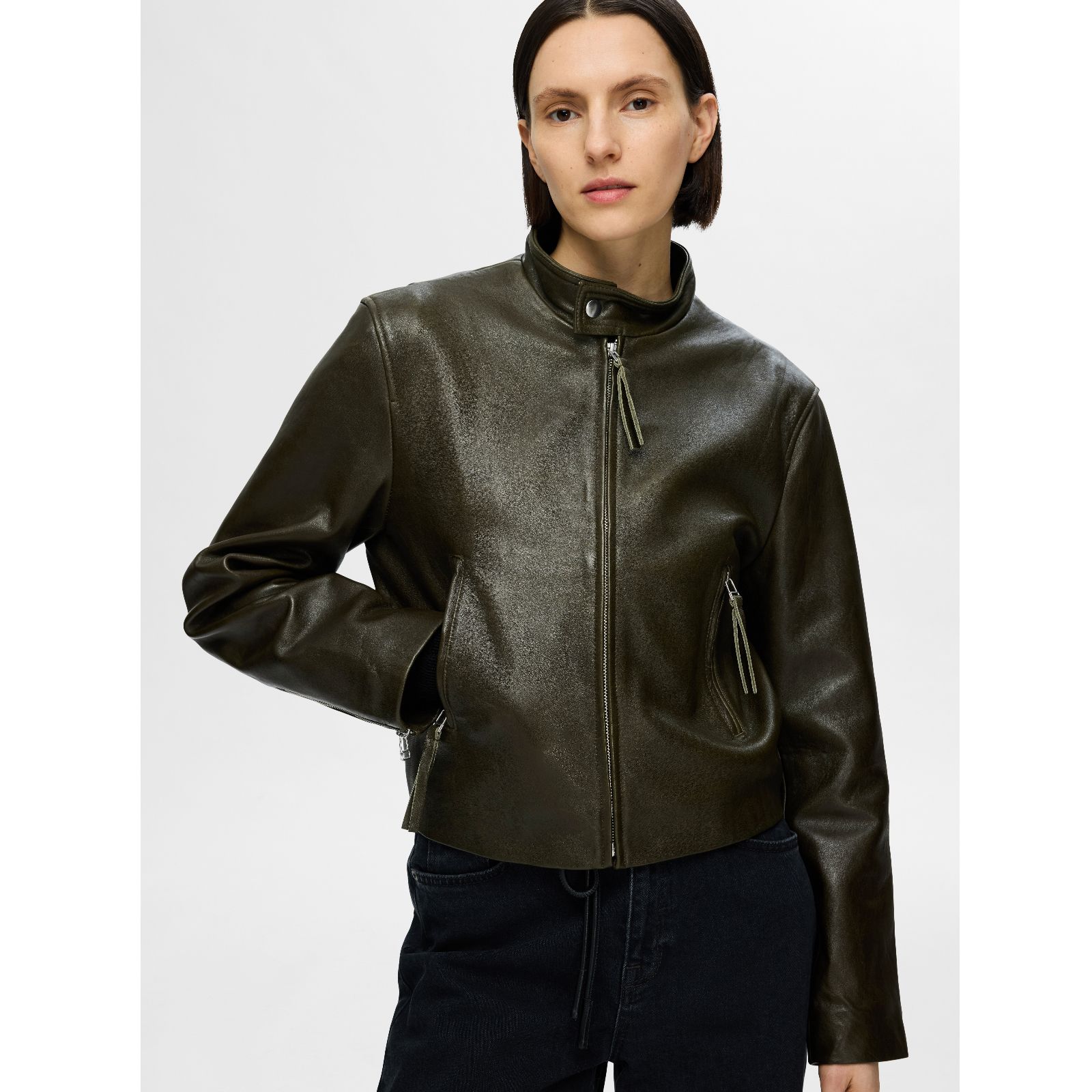 Selected Femme brings you a leather jacket that effortlessly combines contemporary style with timeless elegance. Featuring a high stand-up collar and long sleeves, this jacket is perfect for transitioning between seasons and elevating your everyday look. The sleek design makes it a versatile piece that can be dressed up for a night out or paired with casual wear for a chic daytime ensemble. For a stylish twist, try layering it over a cosy knit or pairing it with tailored trousers.