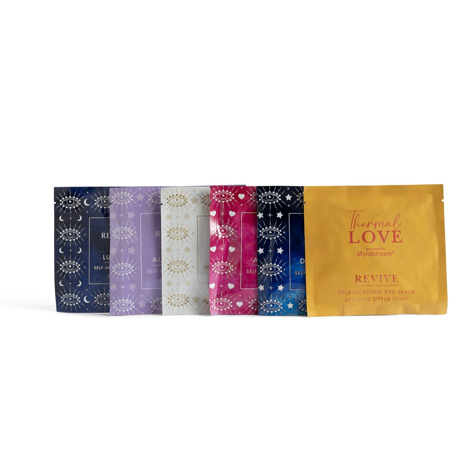 6 x Self-Heating Eye Masks (1 x Aurora Chamomile, 1 x Amour Rose, 1 x Divine Lavender, 1 x Dreamy Jasmine, 1 x Luna Lavender, 1 x Thermal Love Revive Citrus)