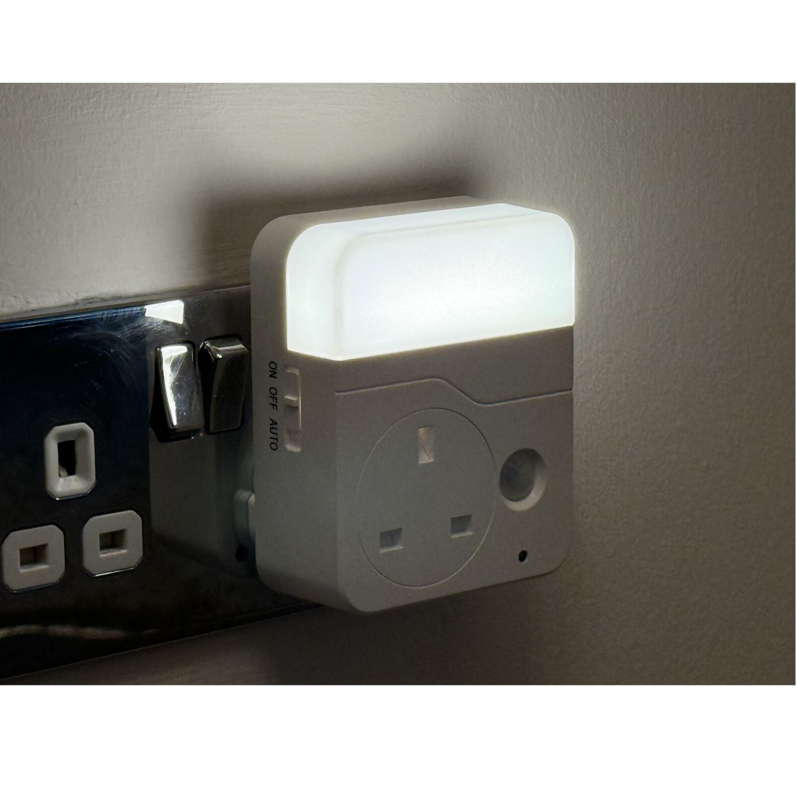 Illuminate your home with the SFIXX LED Socket PIR Night Light set of two. These innovative night lights couldn't be easier to use; simply plug the night light into any wall socket and choose from ON, OFF or AUTO settings. The AUTO mode activates the light when movement is detected within 3 metres, making it ideal for hallways, bedrooms or bathrooms, offering a practical addition to your home.