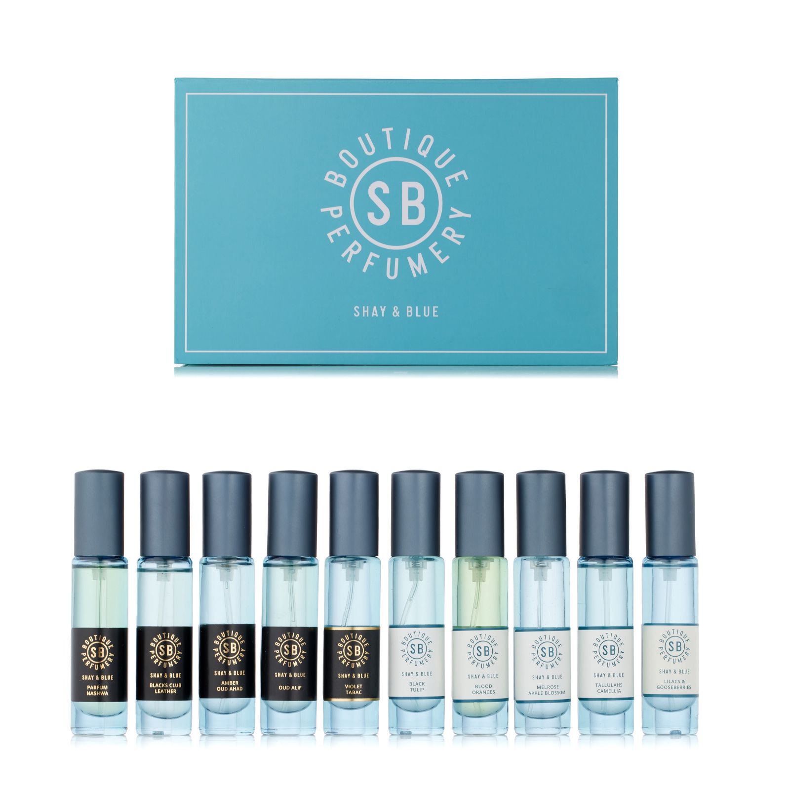 Experience the ultimate in fragrance versatility with Shay & Blue's Fragrance Wardrobe. This luxurious collection includes ten captivating scents, each in a convenient 10ml bottle, perfect for exploring different moods and occasions. With five core lines and five black label exclusives, you'll find a scent for every moment. Whether you're in the mood for the exotic allure of Oud Alif or the fresh charm of Melrose Apple Blossom, this set offers a unique olfactory journey that fits seamlessly into any beauty routine.