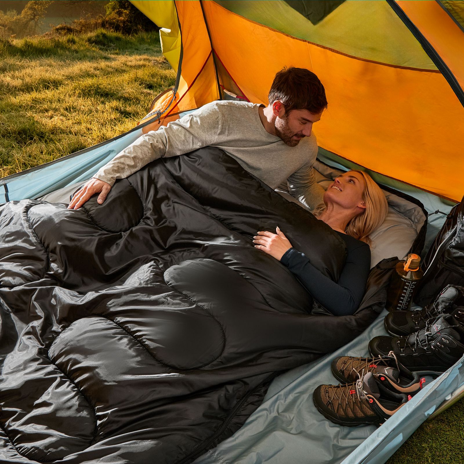 Experience ultimate comfort on your outdoor adventures with the Silentnight Adults Double Sleeping Bag. Crafted by the UK's most trusted sleep brand, this spacious sleeping bag is larger than a double mattress, providing ample room for two adults. Made with lightweight, soft fabric and filled with Softfill fibres, it ensures a cosy and snug sleep. The all-round zip offers easy access and ventilation, making it perfect for spring and summer camping trips. Plus, it's machine washable to keep it fresh and clean.