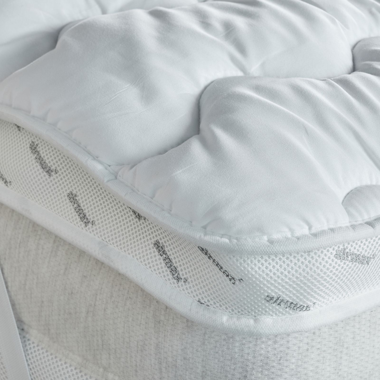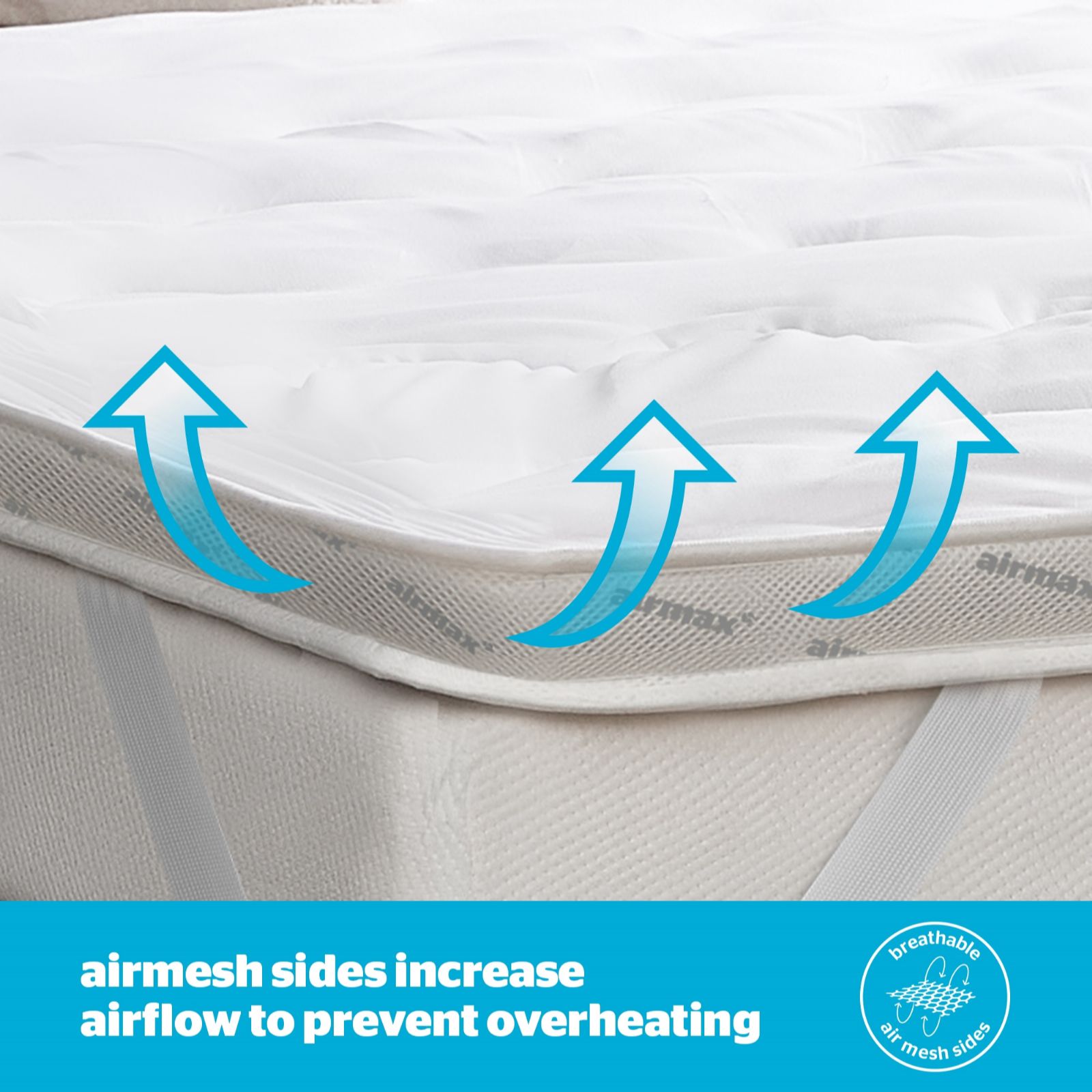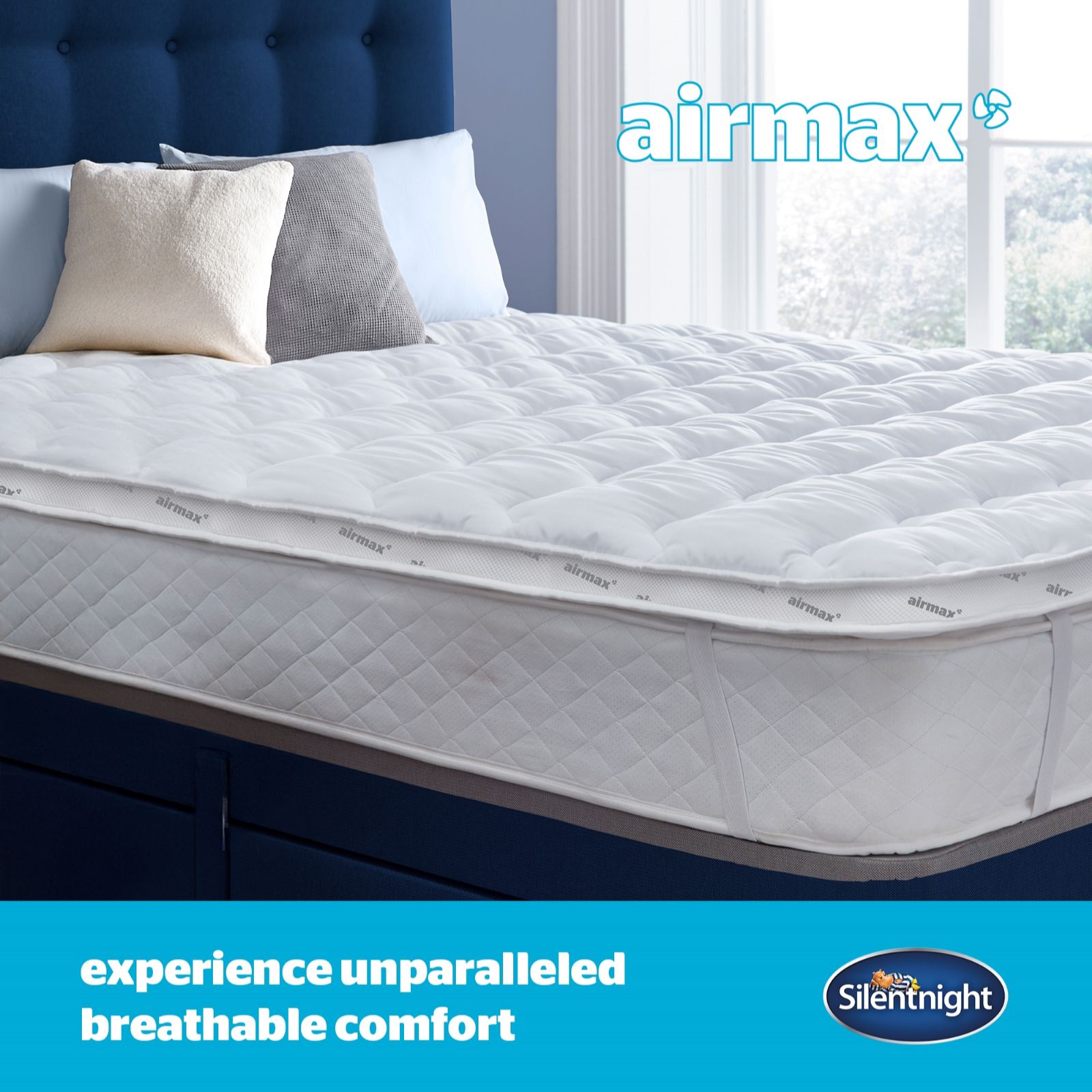 - this Airmax topper provides plush, cushioned comfort and optimal breathability for bedtime bliss all year round. The innovative dual-layer construction and air mesh sides allow air to flow freely between the layers and around your body, helping to regulate temperature and keep you comfortable in every season.