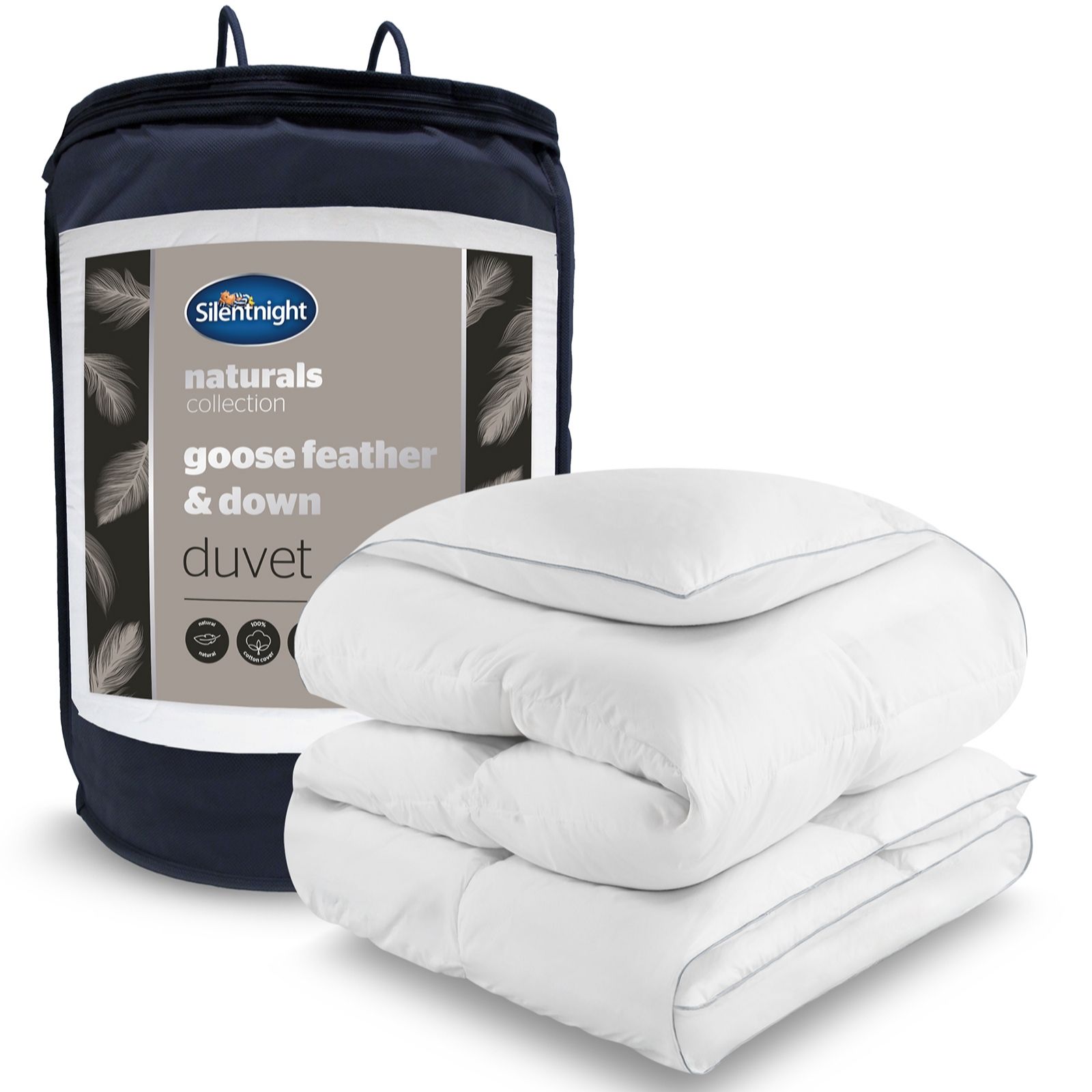 Elevate your sleep with the Silentnight goose feather and down 10.5 tog duvet, designed to wrap you in year-round comfort. Filled with a blend of 90% goose feather and 10% goose down, it offers a lofty feel and superb insulation, while the breathable 100% cotton cover ensures softness against your skin. Perfect for creating a cosy haven in any season, this duvet's box-stitch design keeps warmth evenly distributed night after night.