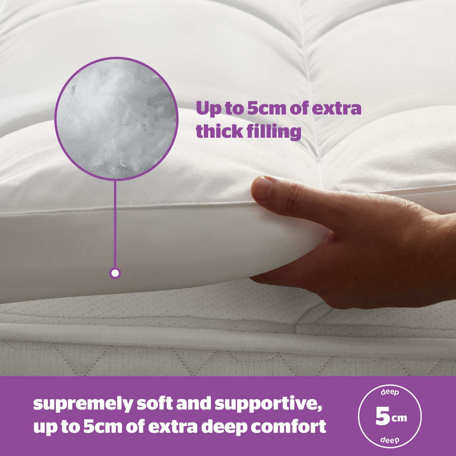 - Quilted design with internal walls for even, long-lasting support