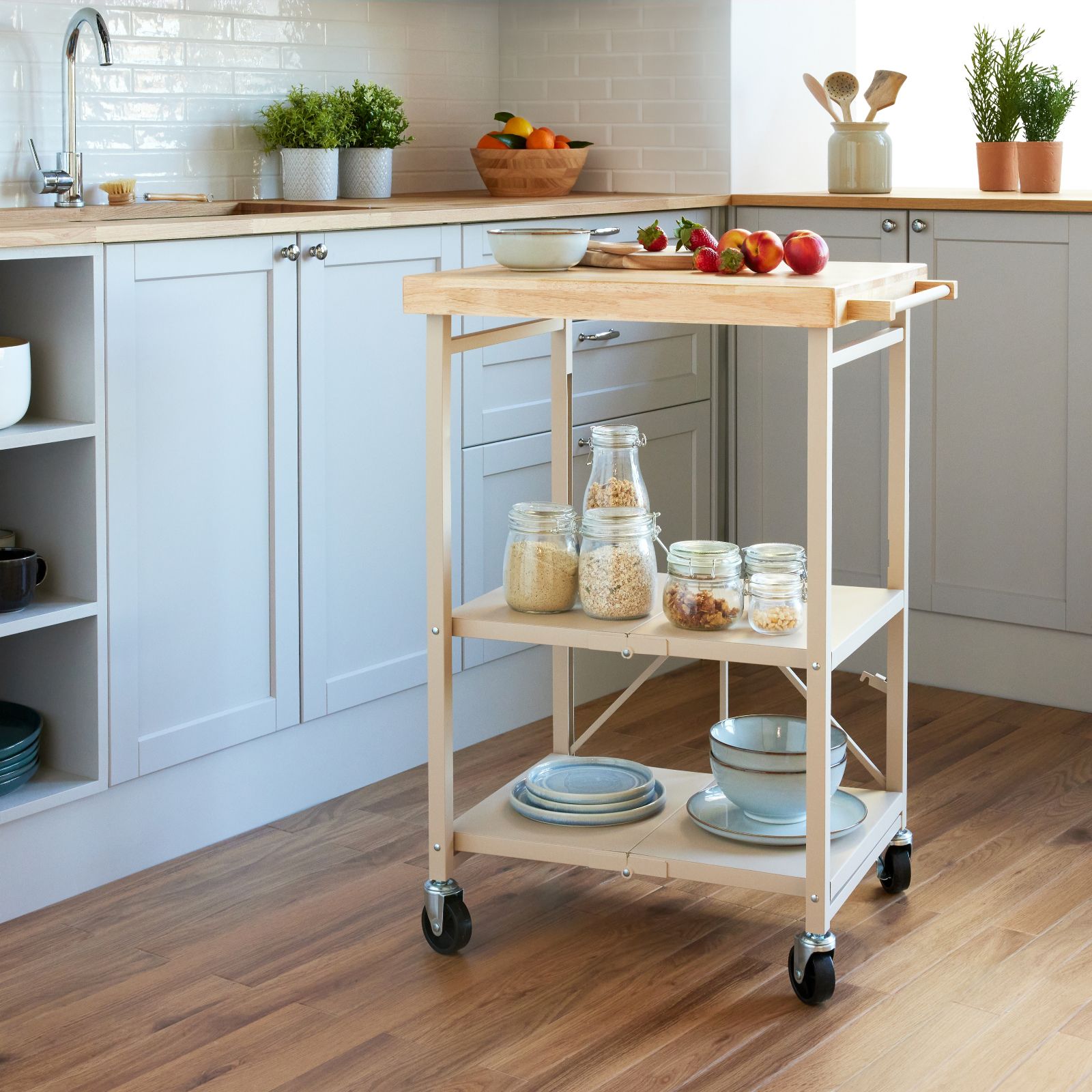 Discover the SiMPLi Folding Kitchen Cart, an instant extra workspace that opens quickly to give you extra prep surface. A space-smart design that folds flat when not in use, this lightweight folding kitchen cart is ideal for small kitchens, apartments, campers or wherever youd like to save space and maximise storage.